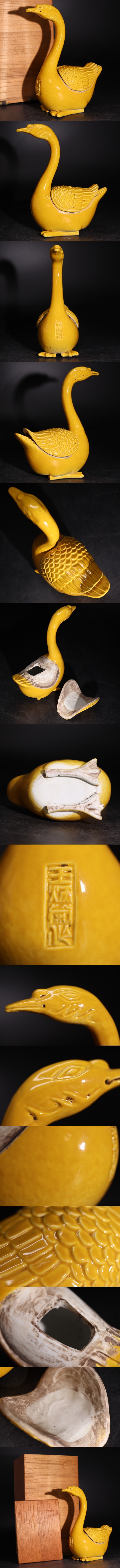 | 王炳榮製 款 黄釉 阿比留 香炉 木箱付 / 中国美術 黄交趾 香道具 煎茶道具 煎茶飾 .G2787 |