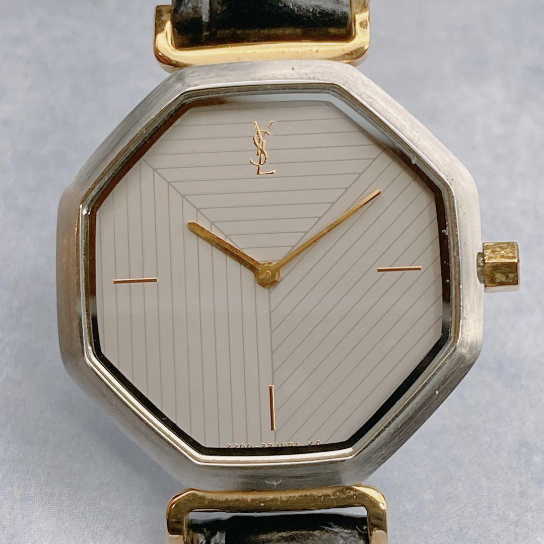 【稼動品】YSL サンローラン 八角形 腕時計 オクタゴン 新品社外ベルト ブラック イヴ・サンローラン シルバー ゴールド レディース 收藏