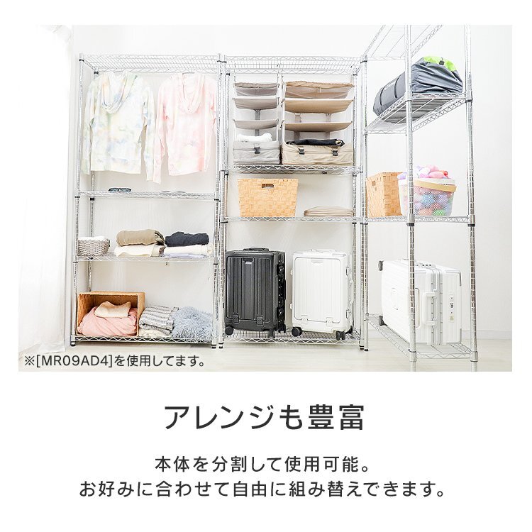 どんなお部屋にも合わせやすいスチールラックです。 ぐらつき防止アジャスター付き! クギやネジを使わずに簡単に組み立て出来ます! 棚の高さを自由に変えることができます。 一人暮らしのお部屋やリビング、キッチン、物置など場所を問わず活躍できます。 アパレルショップの店頭用やオフィスにも使用されています。 【仕様】 サイズ(約):幅90×奥行30×高さ120cm 耐荷重(約):(全体)300kg / (棚板1枚あたり)75kg 材質:スチール(クロームメッキ)、ABS樹脂他 重量(約):9.82kg 【商品内容】 シェルフ(棚板) ×4 ポール(ジョイント式) ×4 棚板固定部品 ×16(+予備付属) 標準アジャスター(固定足) ×4 |