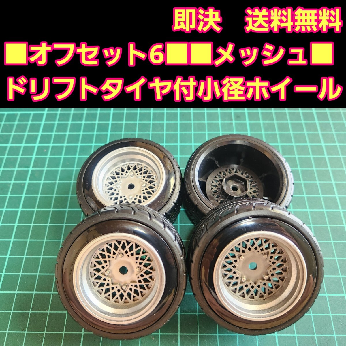 即決《送料無料》オフセット6 銀色■メッシュ■ 小径 ホイール ドリフト タイヤ 付 旧車 ラジコン ヨコモ ドリパケ TT01 TT02 YD-2 TA05 收藏
