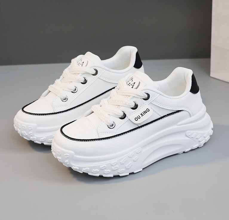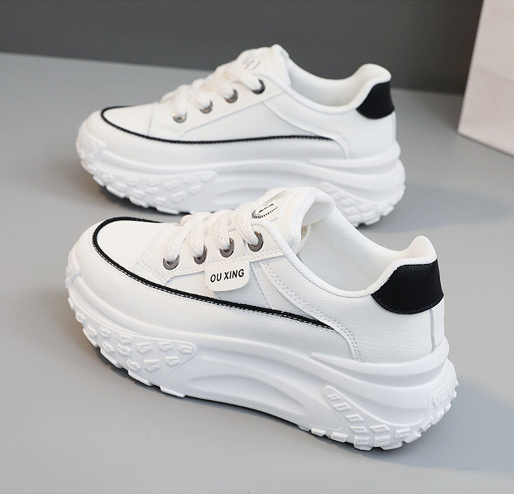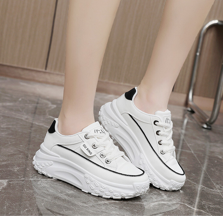 厚底スニーカー レディース 運動靴 軽量 美脚 インヒールシークレットシューズ 疲れにくい レースアップ 身長アップ ホワイト 24.5 cm 收藏