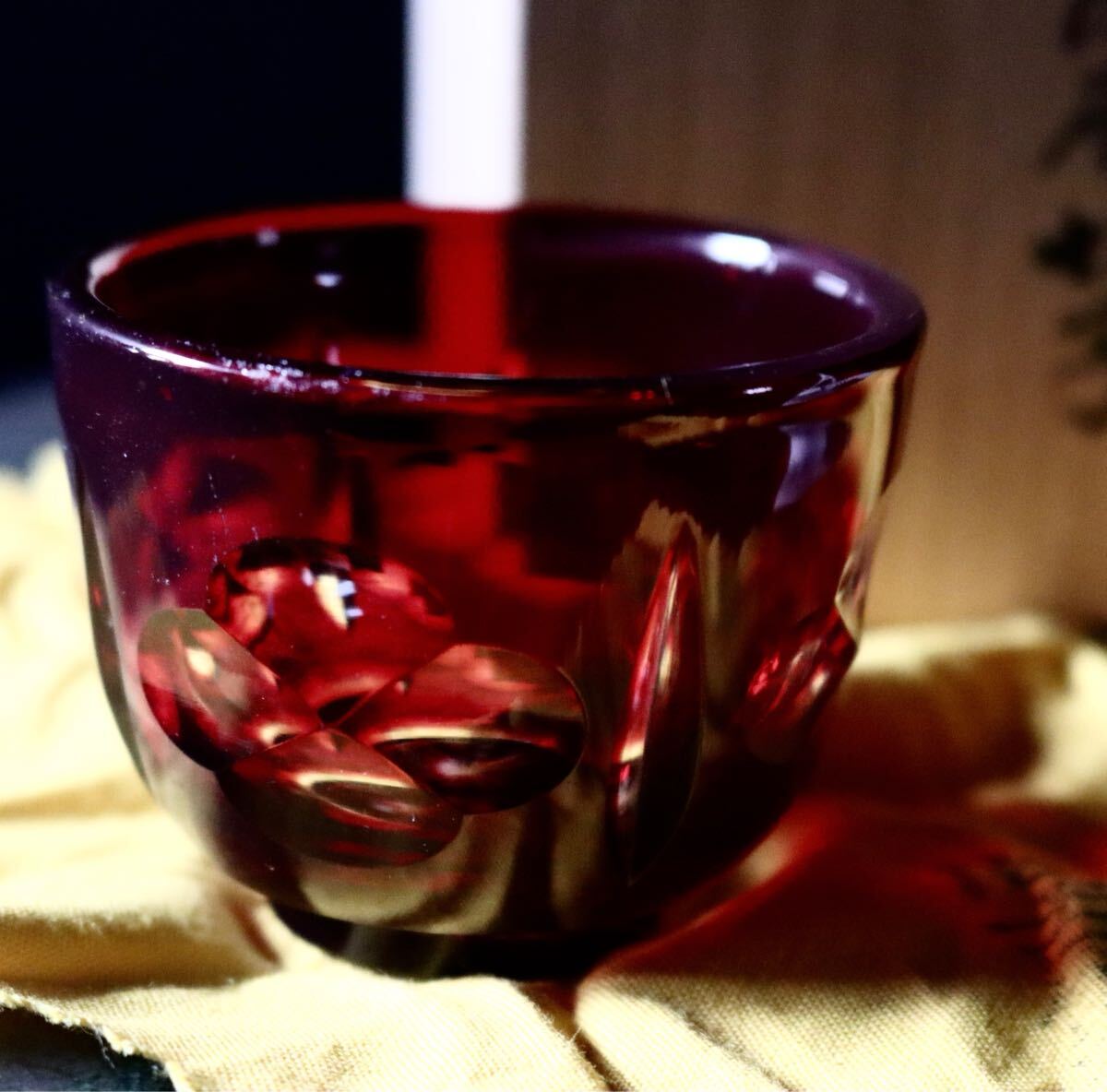 SHIMADZU 長期保管品 尚古集成館監修 復元島津薩摩切子 切子 猪口 薩摩ガラス工芸 色被せガラス 赤 復元 薩摩切子 收藏