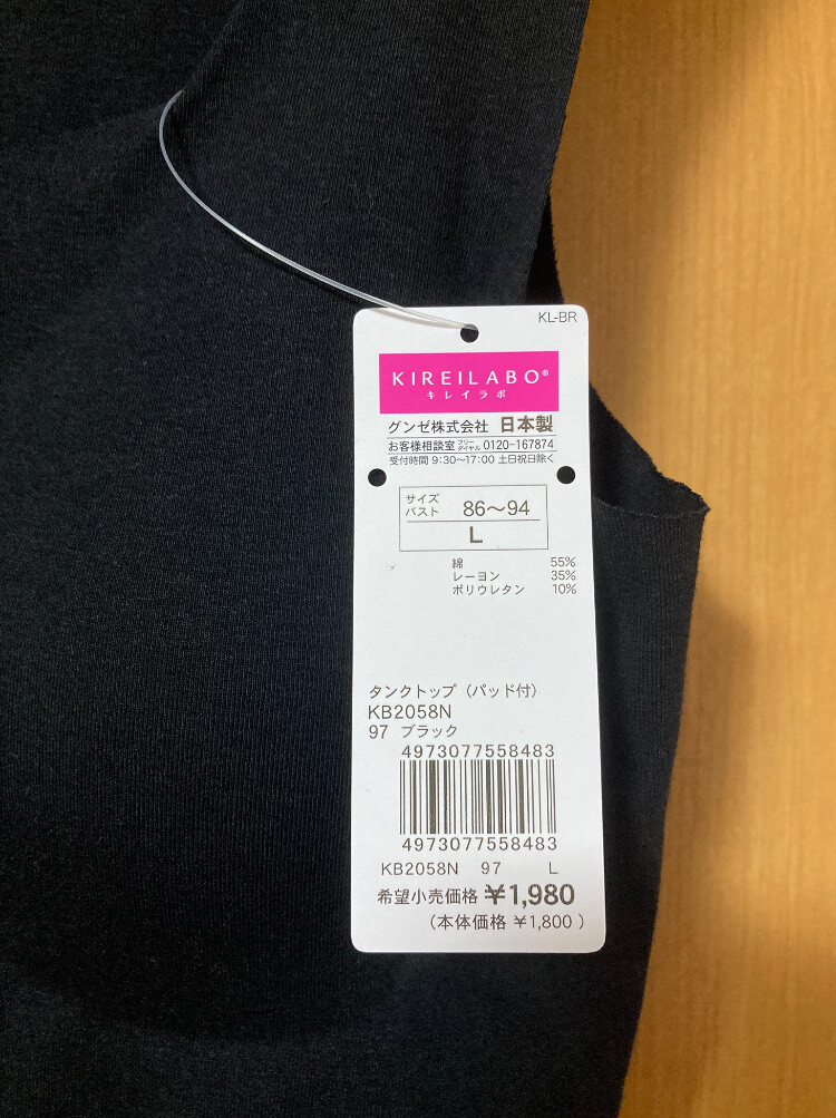 グンゼ KIREILABO パット付きタンクトップ Fitte 黒 Lサイズ ノンワイヤー ブラキャミ キャミソール GUNZE キレイラボ フィッテ 收藏