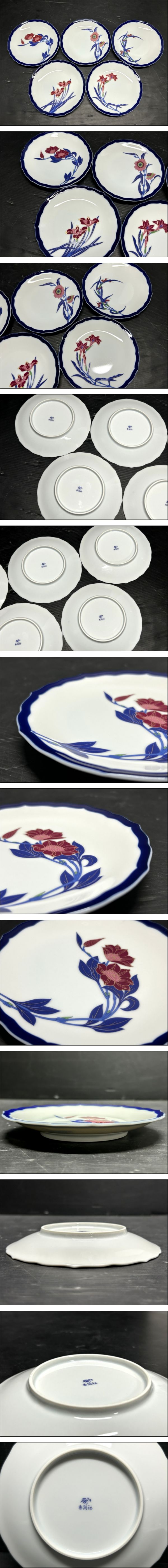 | 微美品 香蘭社 瑠璃輪花/草花文 5種絵変わり 銘々皿 5客揃 小~中皿/平皿/取り皿/丸皿/プレート/和食器/オールド/年代物/時代物 | |