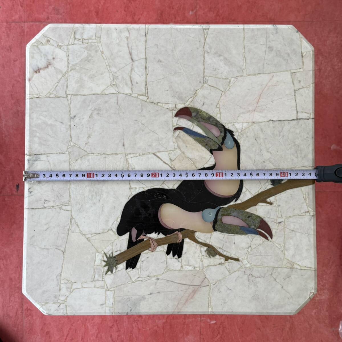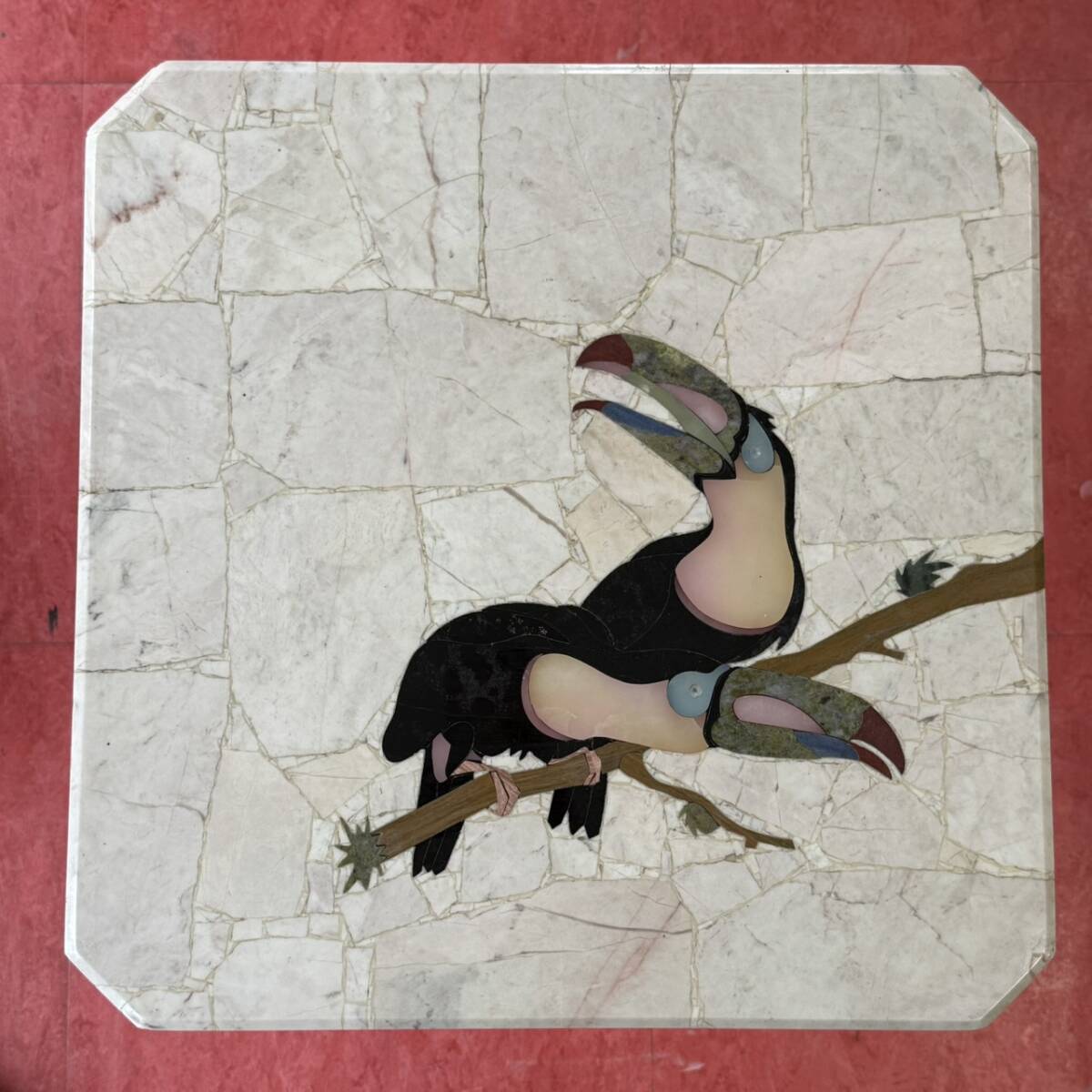 | 【10138-32】天然石 大理石 象嵌細工 サイドテーブル オオハシ ブラジル産 | ||