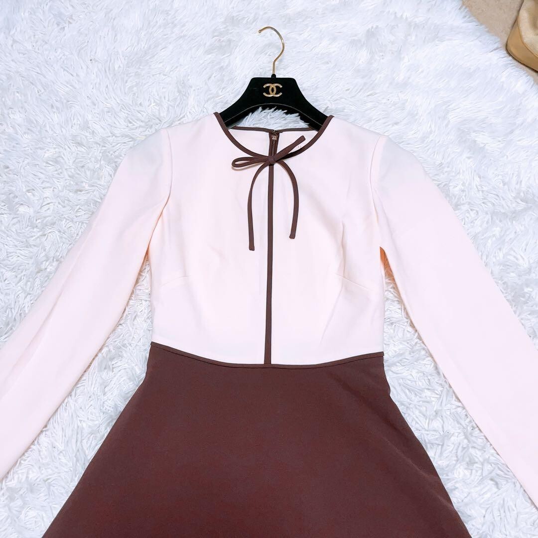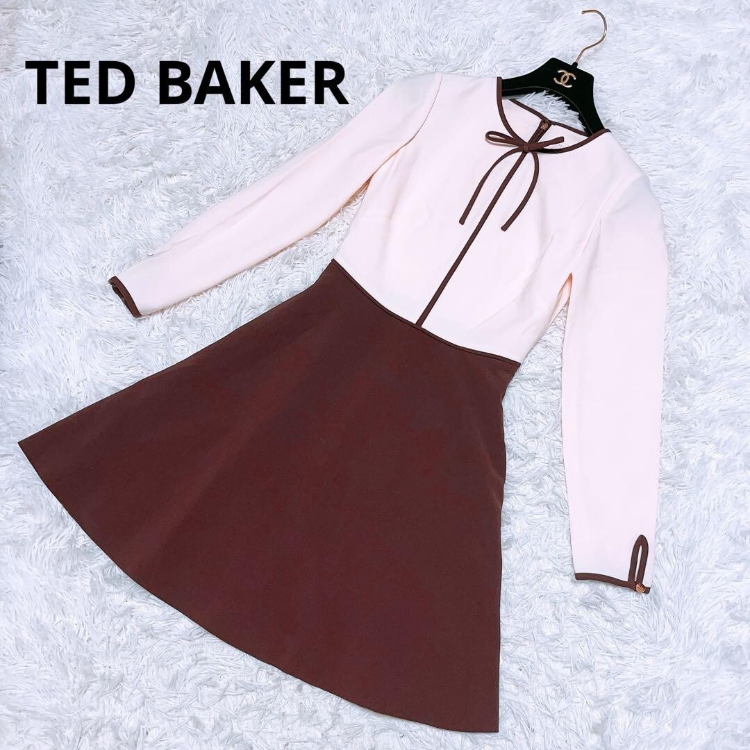 TED BAKER リボン 金ボタン フレア ワンピース 長袖 バイカラー 收藏