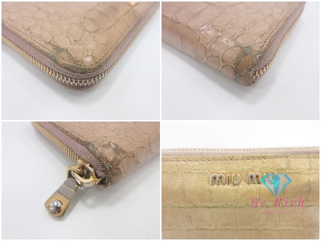 ミュウミュウ miumiu 二つ折り財布 ラウンド ファスナー 長財布 5ML506 クロコ フュ型押し ベージュ レザー ウォレット 【中古】 bs4132 收藏