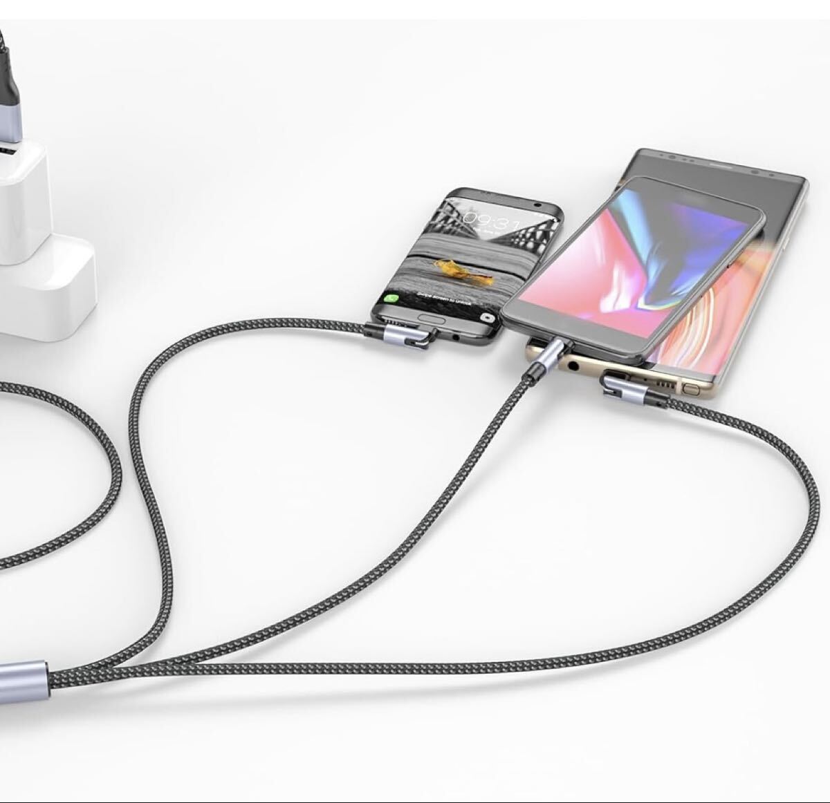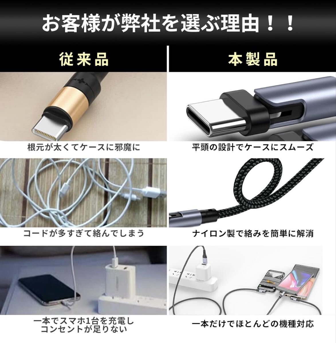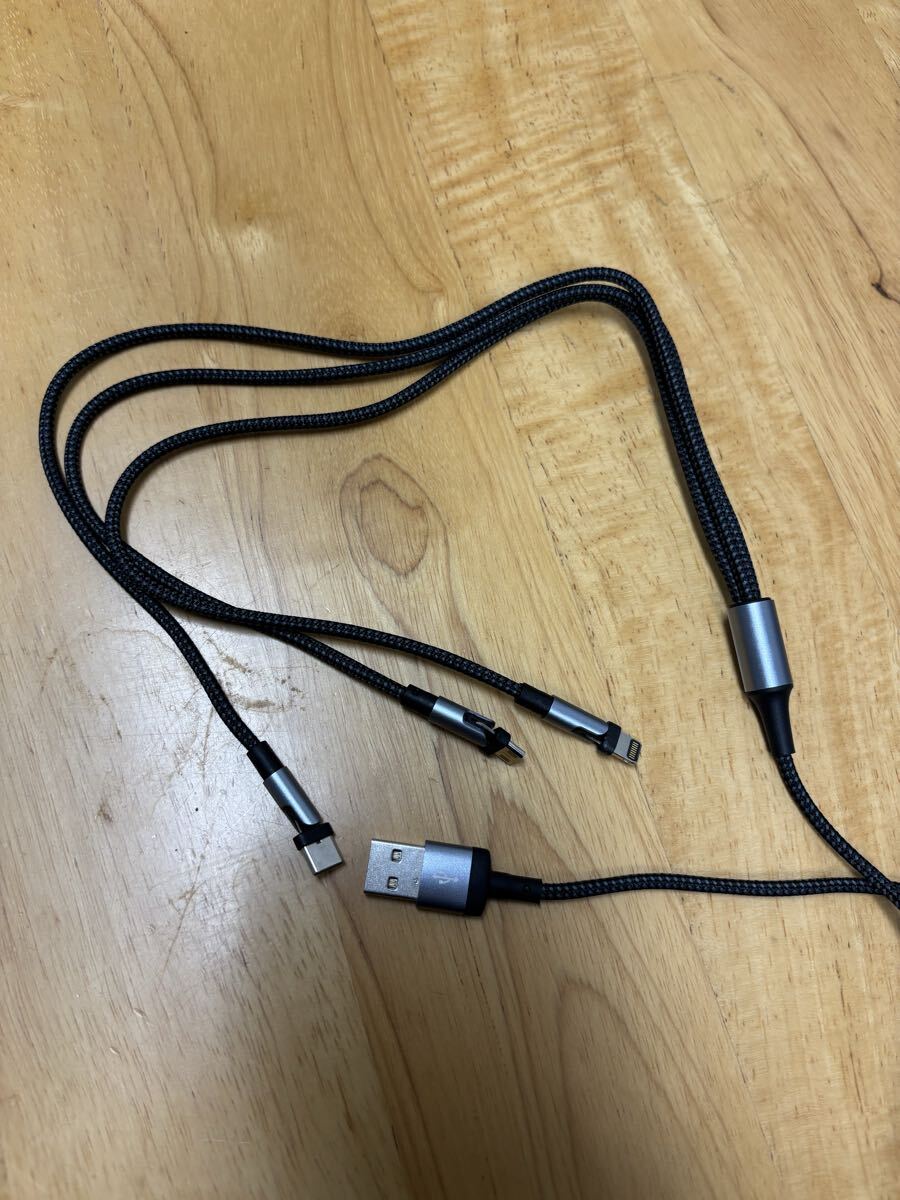 3in1充電USBケーブル 2本セット ライトニング、マイクロタイプB、タイプC 3種類のコネクタ 180度回転可能端子 收藏