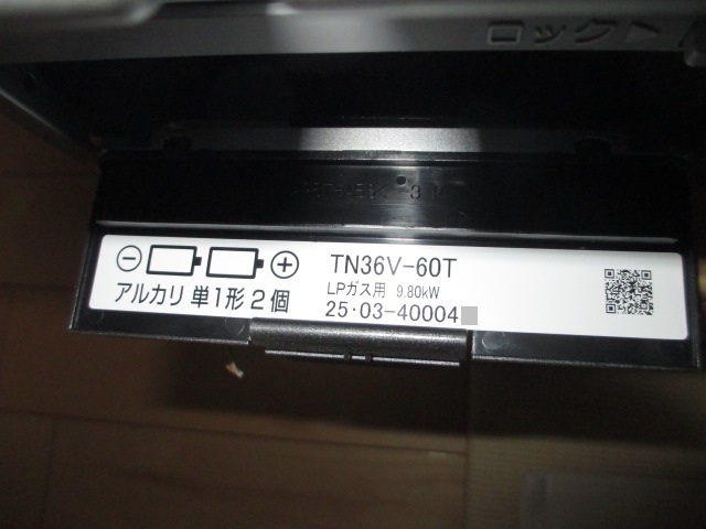 ◎ 未使用 LPガス/プロパンガス TN36V-60T タカラスタンダード 2025年3月製 ◎