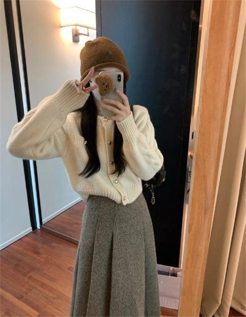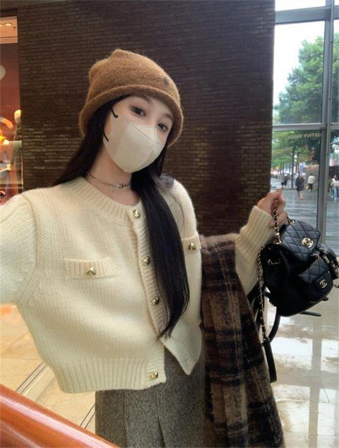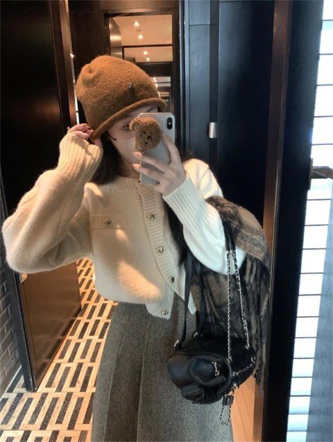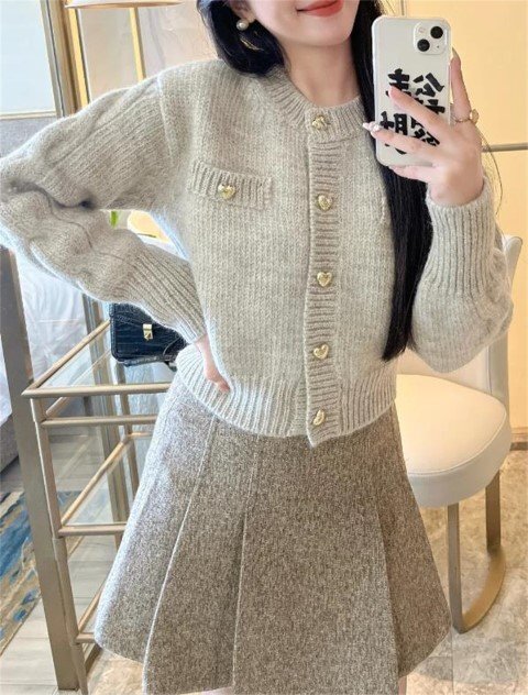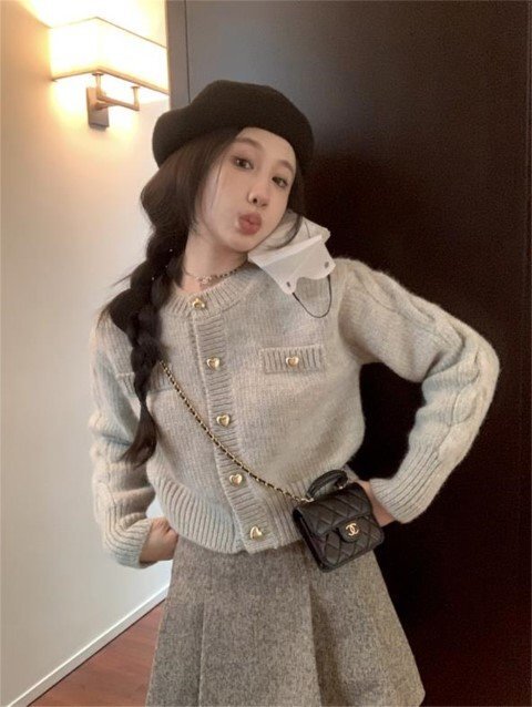 ショート丈トップス ニット カーディガン 羽織 長袖 アウター カジュアル かわいい レディース フリー グレー 收藏