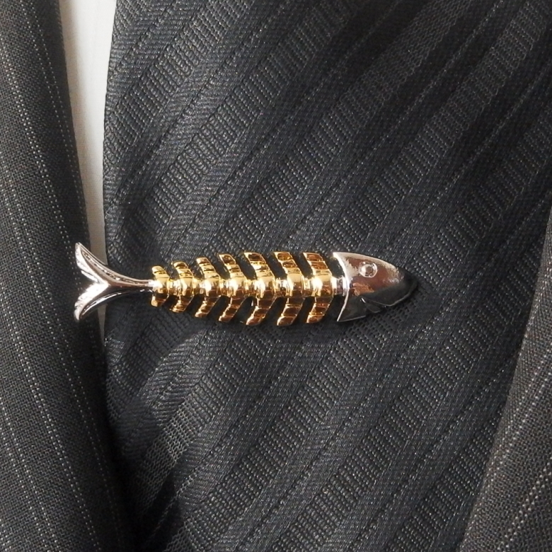 魚の骨 シルバー ゴールド ユニーク タイピン ネクタイピン 收藏