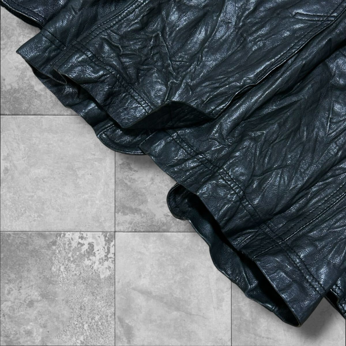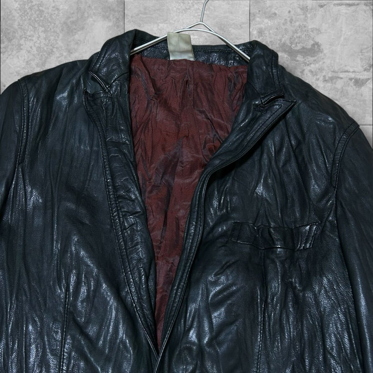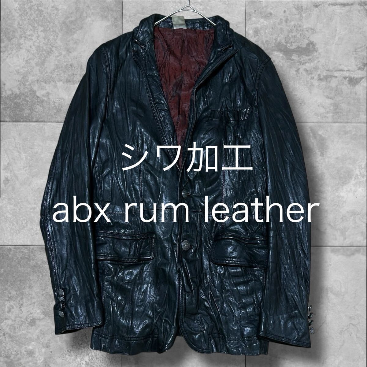 【シワ加工】abx 羊革 テーラードジャケット レザージャケット 本革 メンズ 黒 ブラック ラムレザー エービーエックス Mサイズ メンズ 收藏