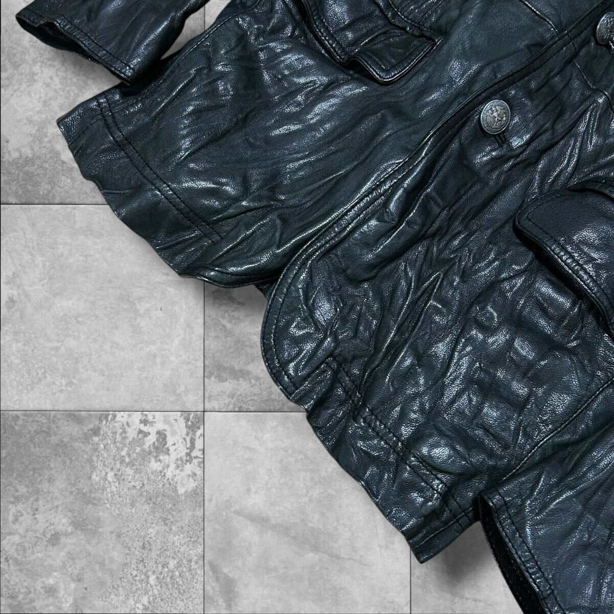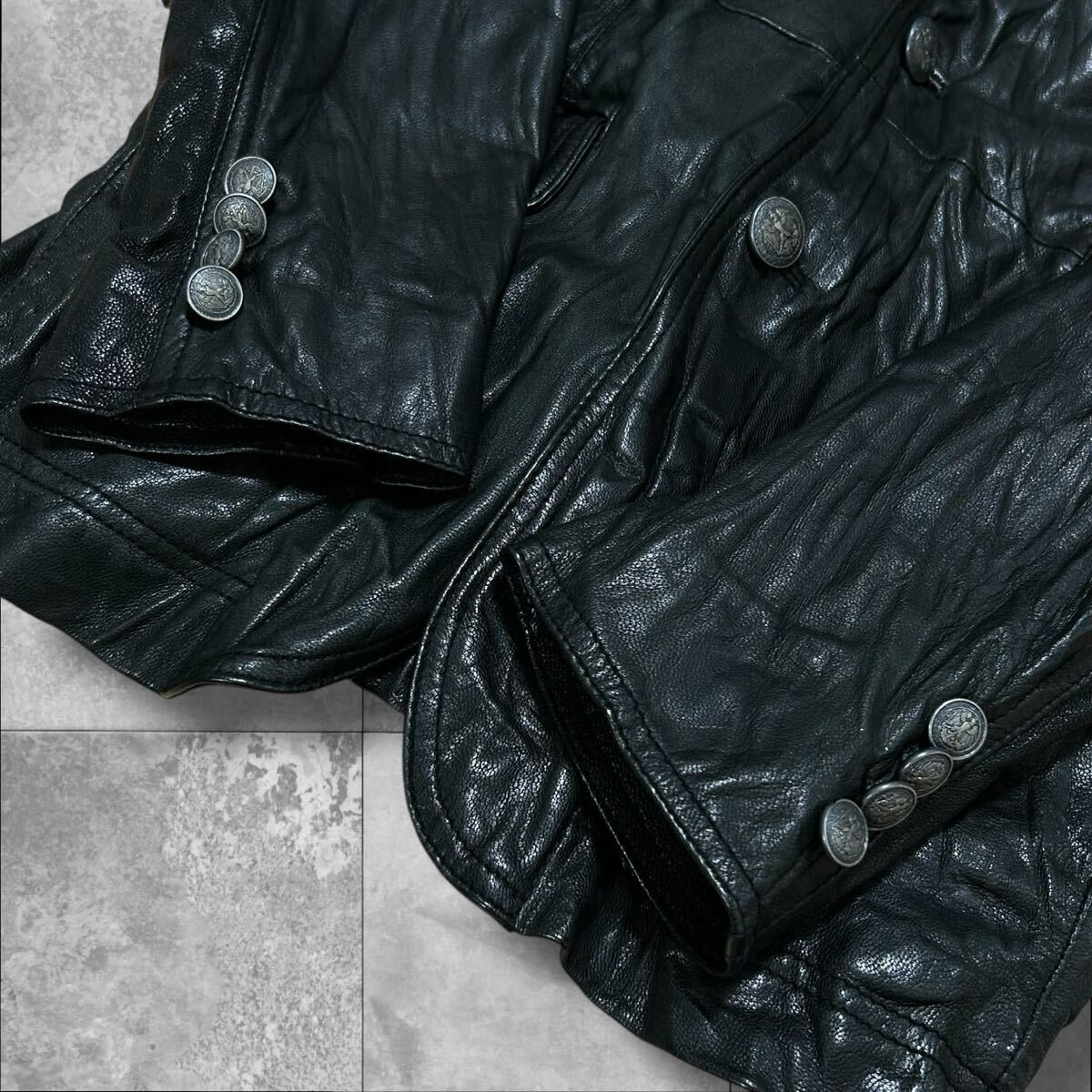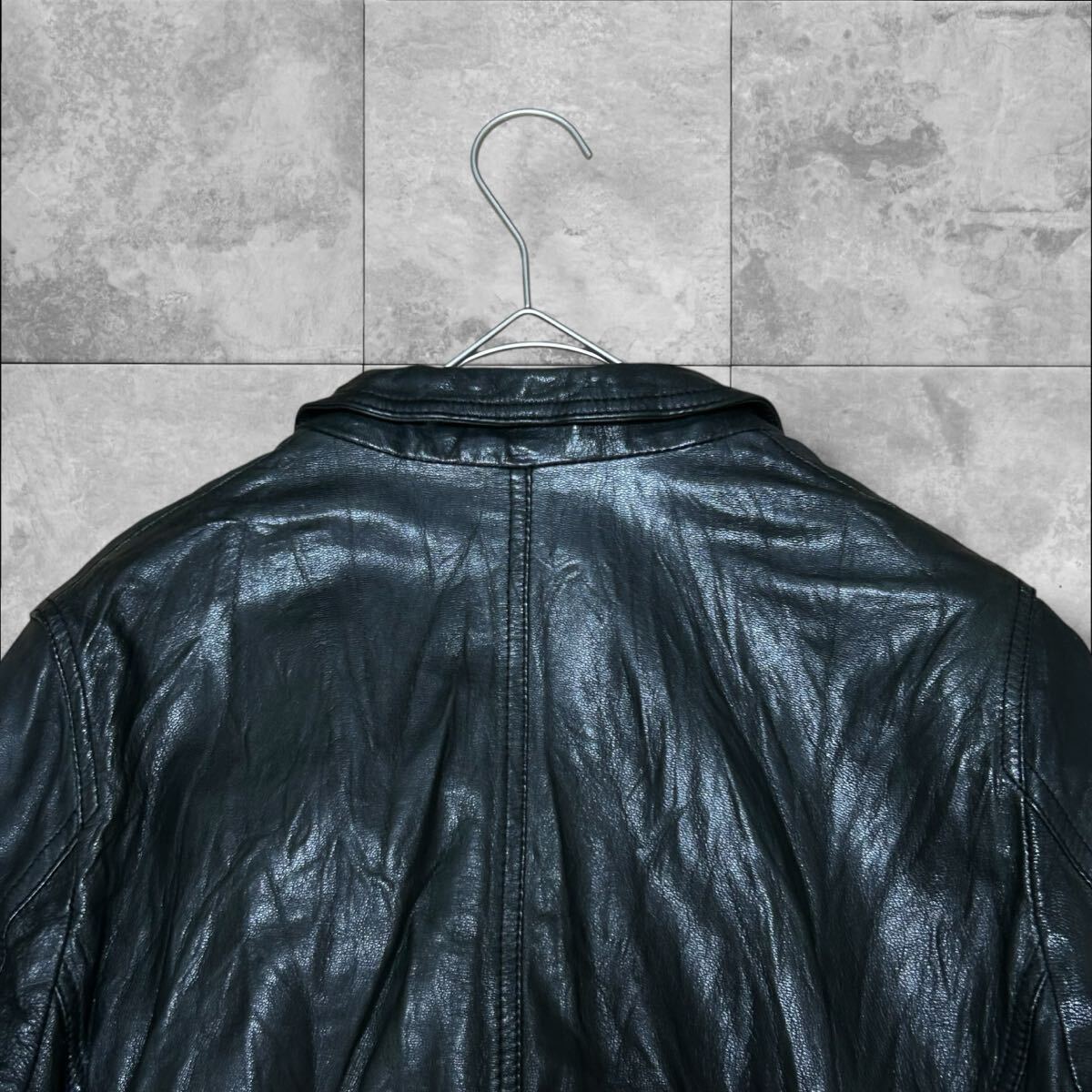 【シワ加工】abx 羊革 テーラードジャケット レザージャケット 本革 メンズ 黒 ブラック ラムレザー エービーエックス Mサイズ メンズ 收藏