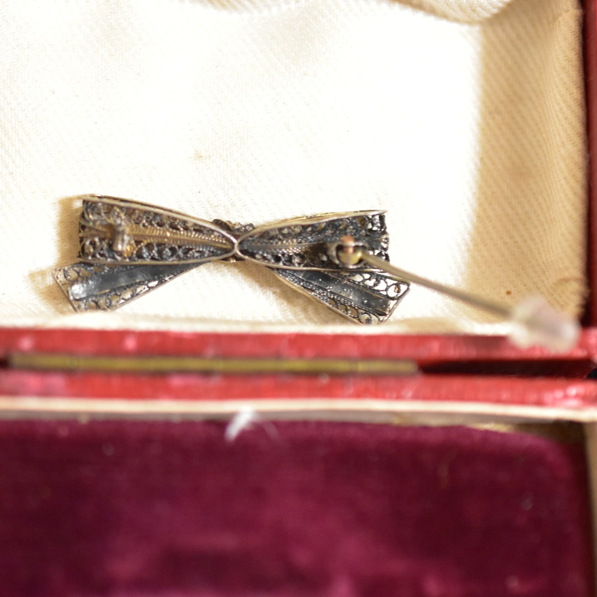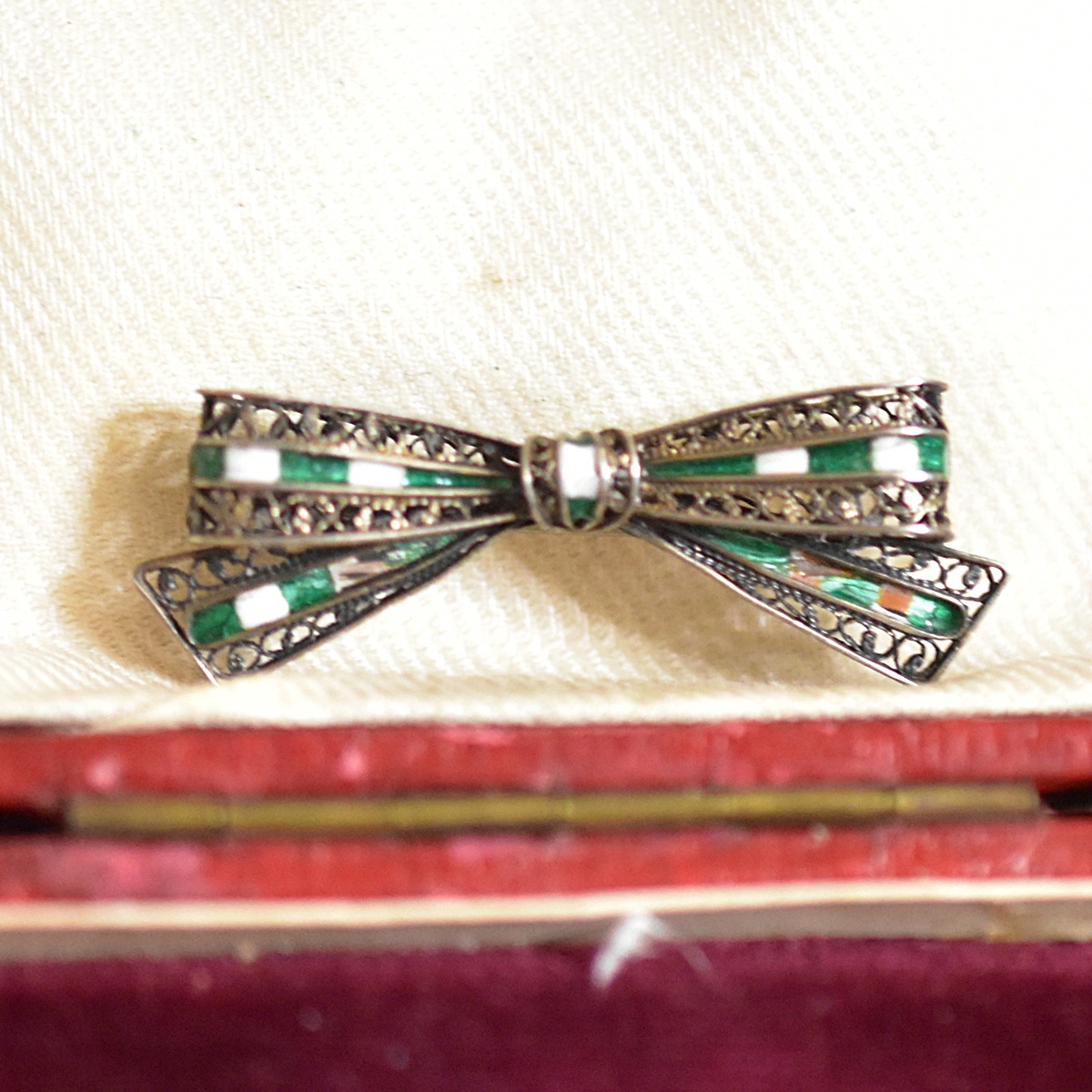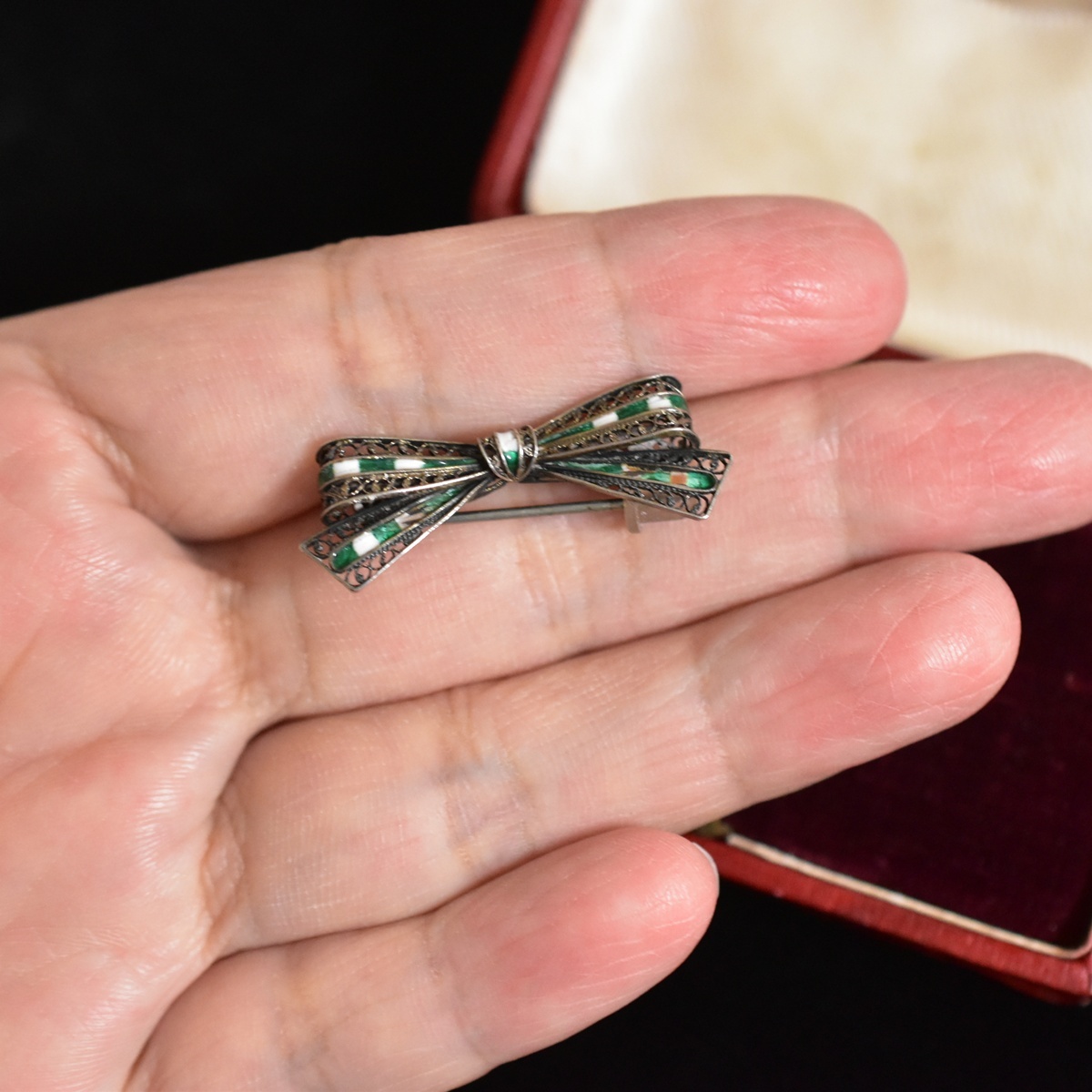 アンティーク 銀線細工とエナメル/七宝のリボンブローチ 19世紀後期~20世紀初頭ごろ ※金具無し※ 本物保証 收藏