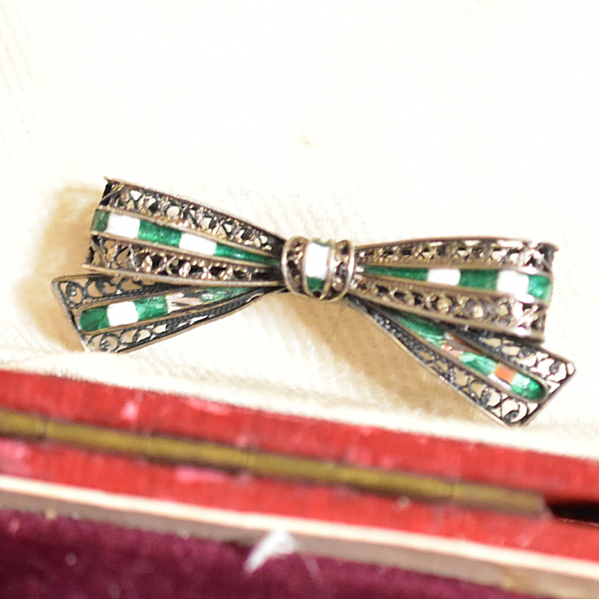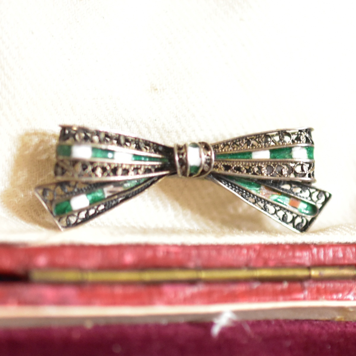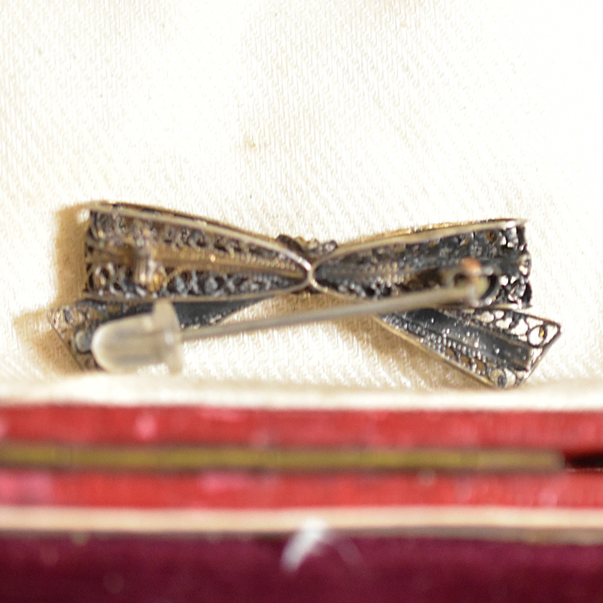 アンティーク 銀線細工とエナメル/七宝のリボンブローチ 19世紀後期~20世紀初頭ごろ ※金具無し※ 本物保証 收藏