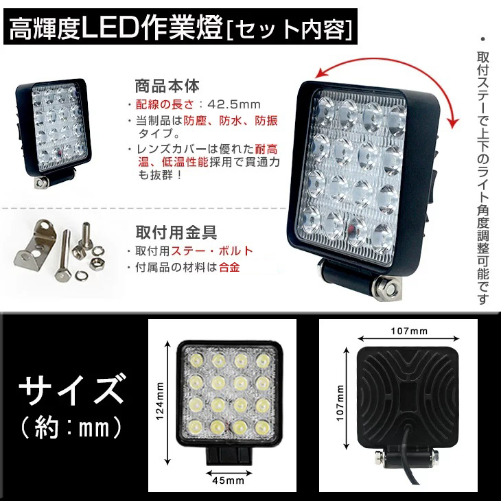 即納 5個セット 48W led作業灯 3360ルーメン LED ワークライト 16連★48Wハイパワー 角型 高照度 ホワイト LED作業灯/集魚灯 12V/24V 102C 收藏