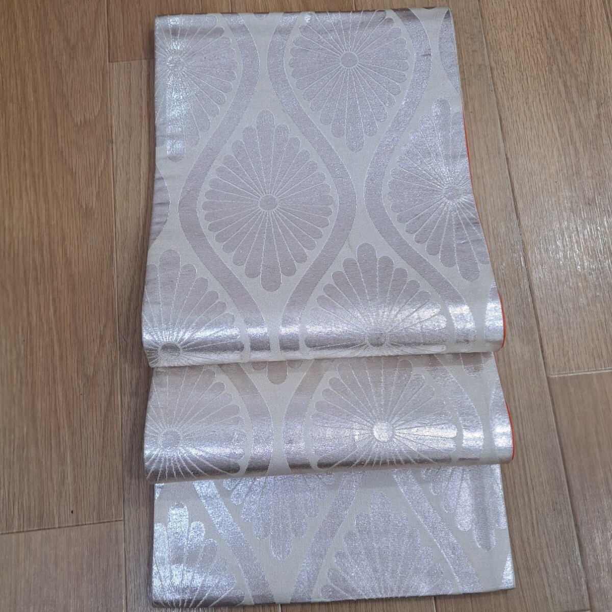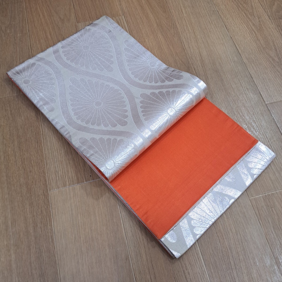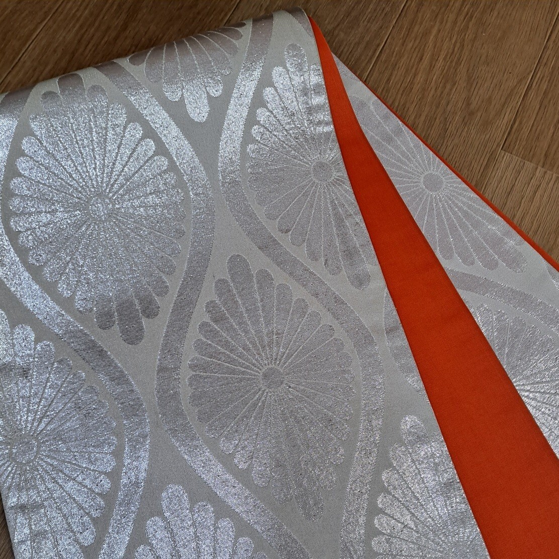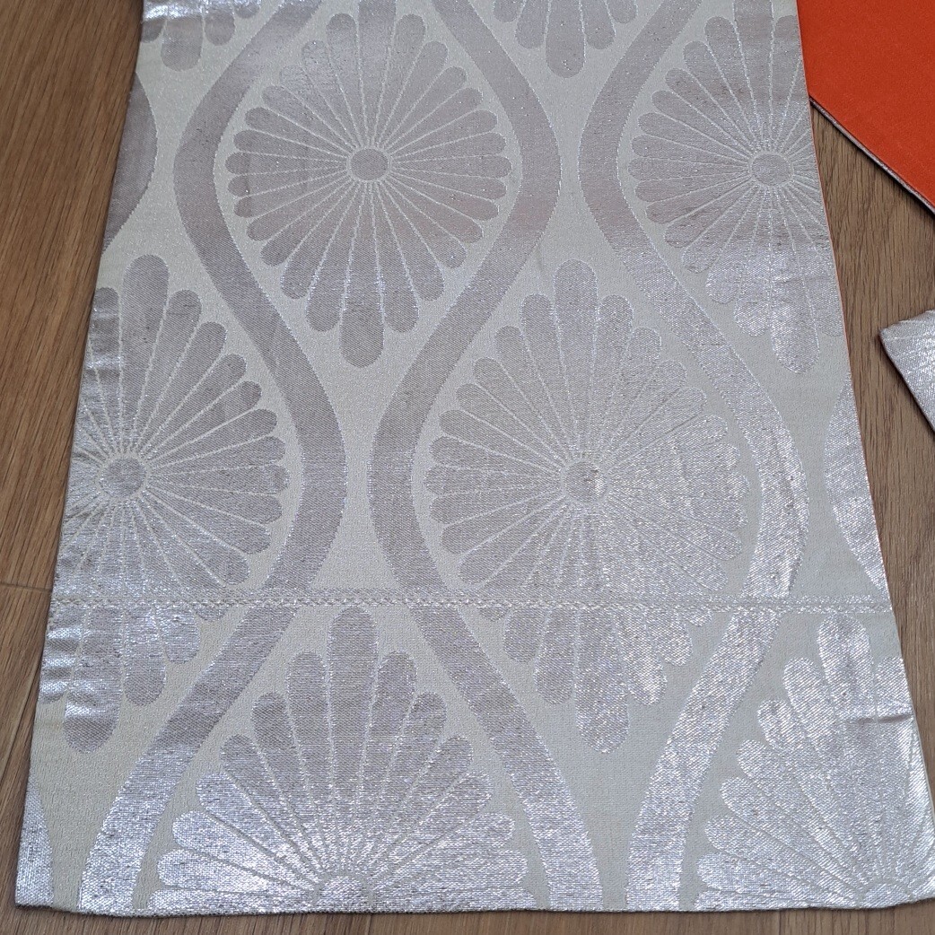 七五三祝着着物用帯 正絹 七歳着物用帯(明るい銀色の豪華なシルバーの菊柄) 收藏