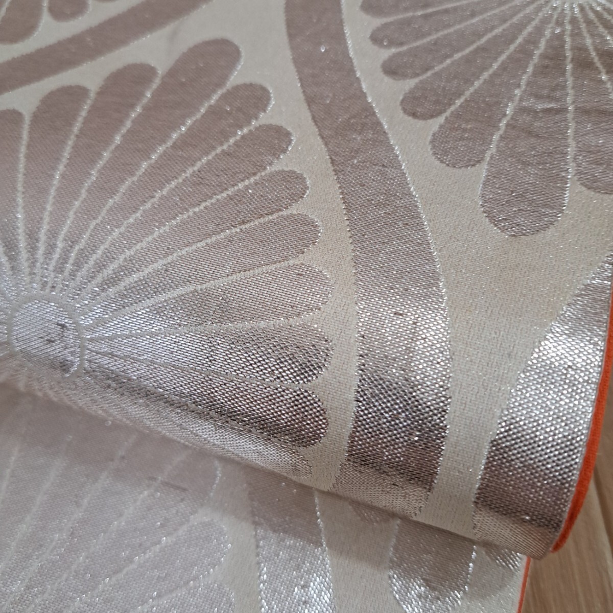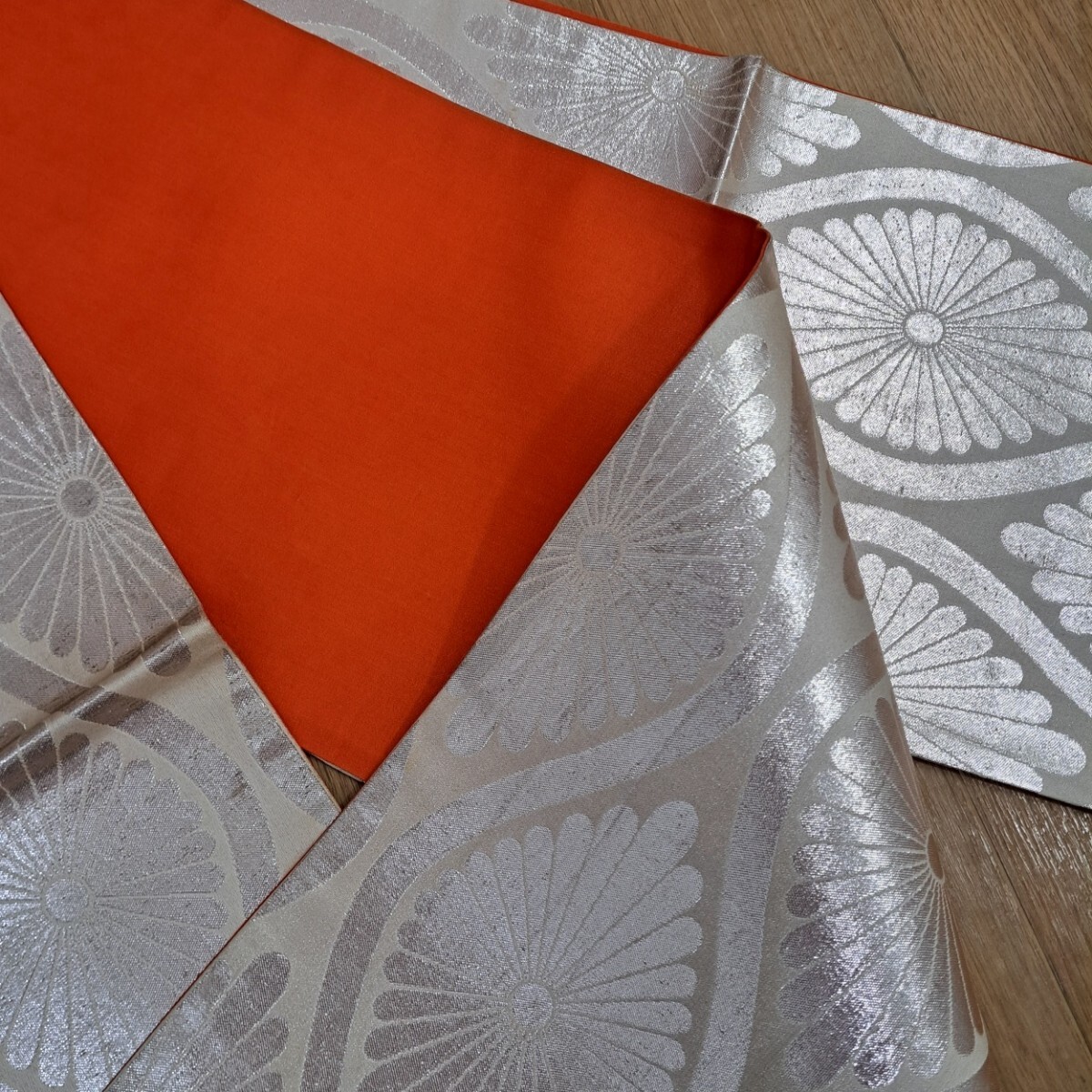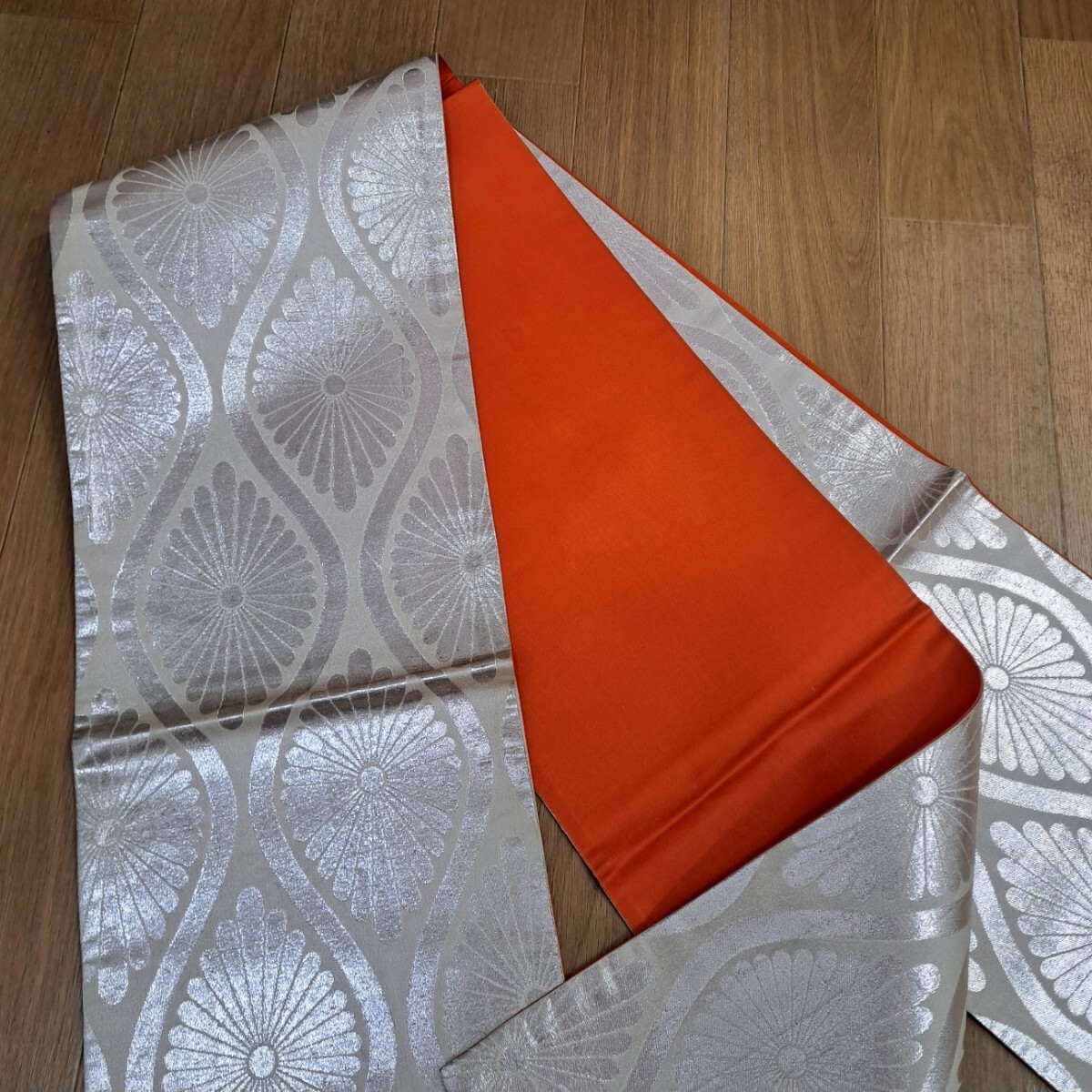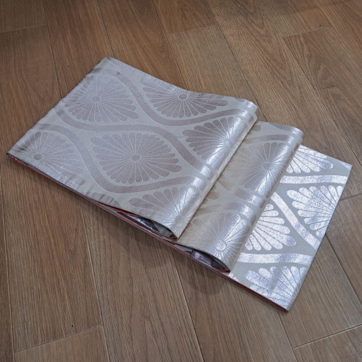 七五三祝着着物用帯 正絹 七歳着物用帯(明るい銀色の豪華なシルバーの菊柄) 收藏