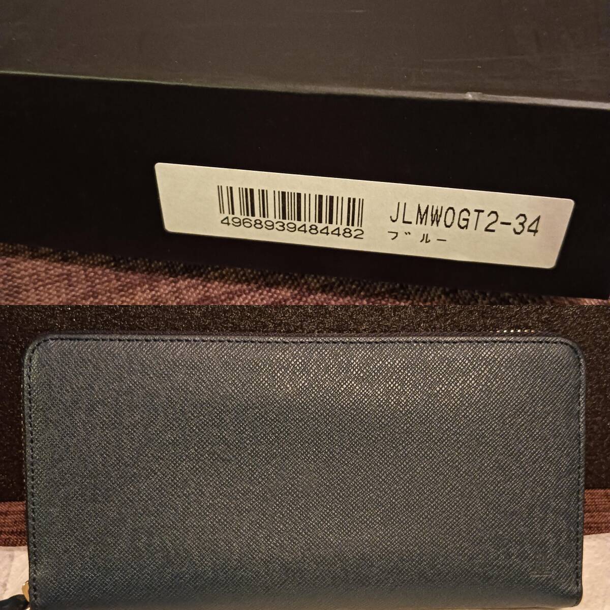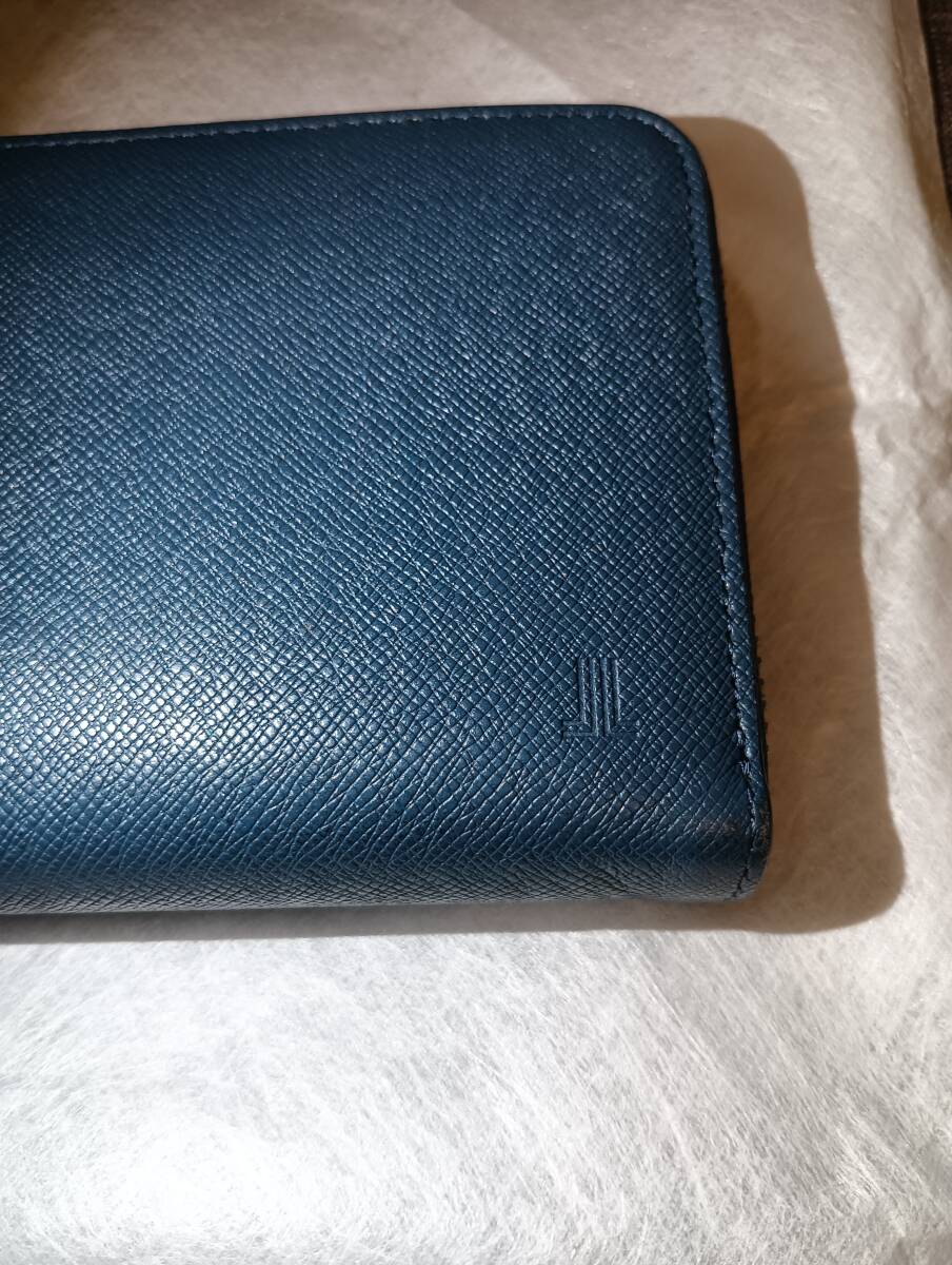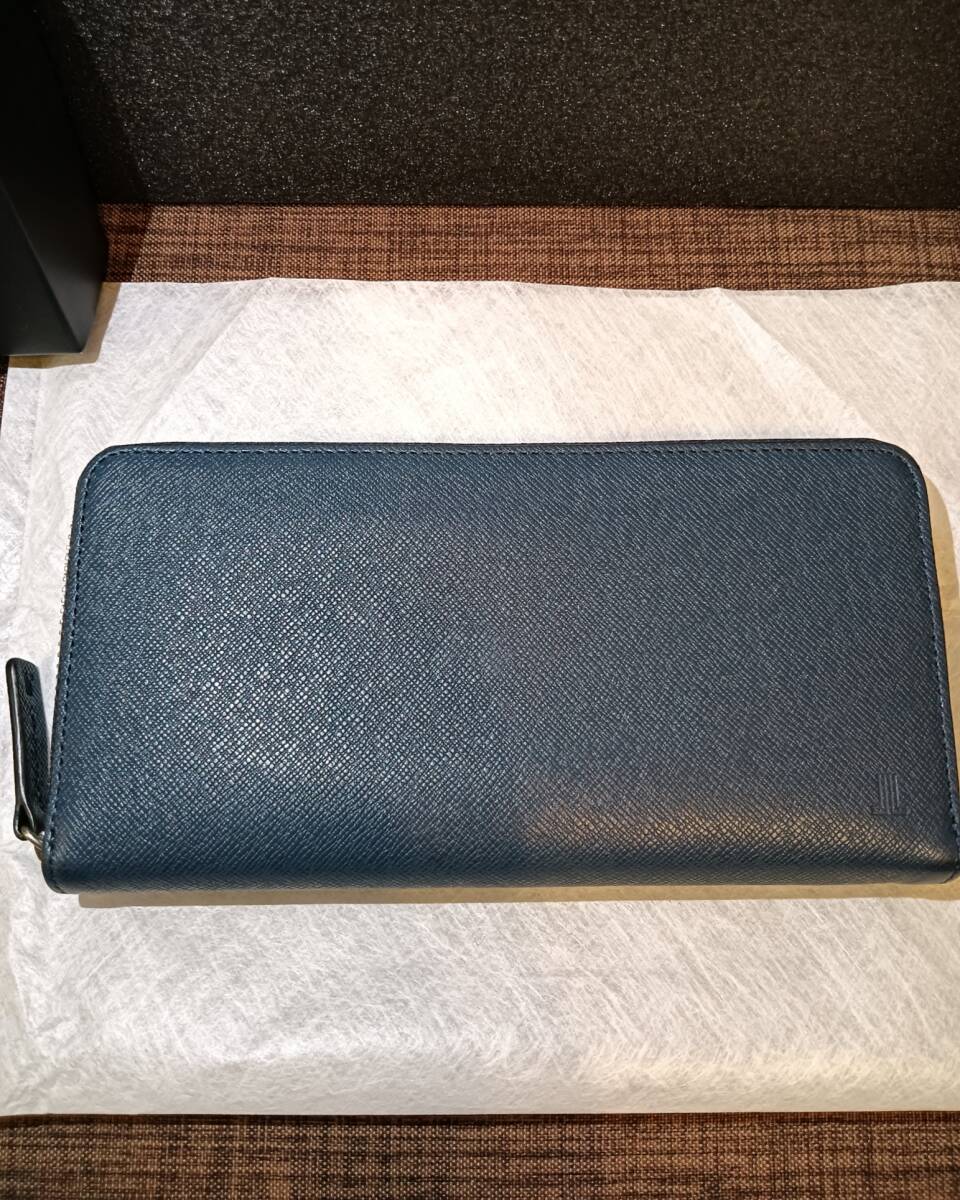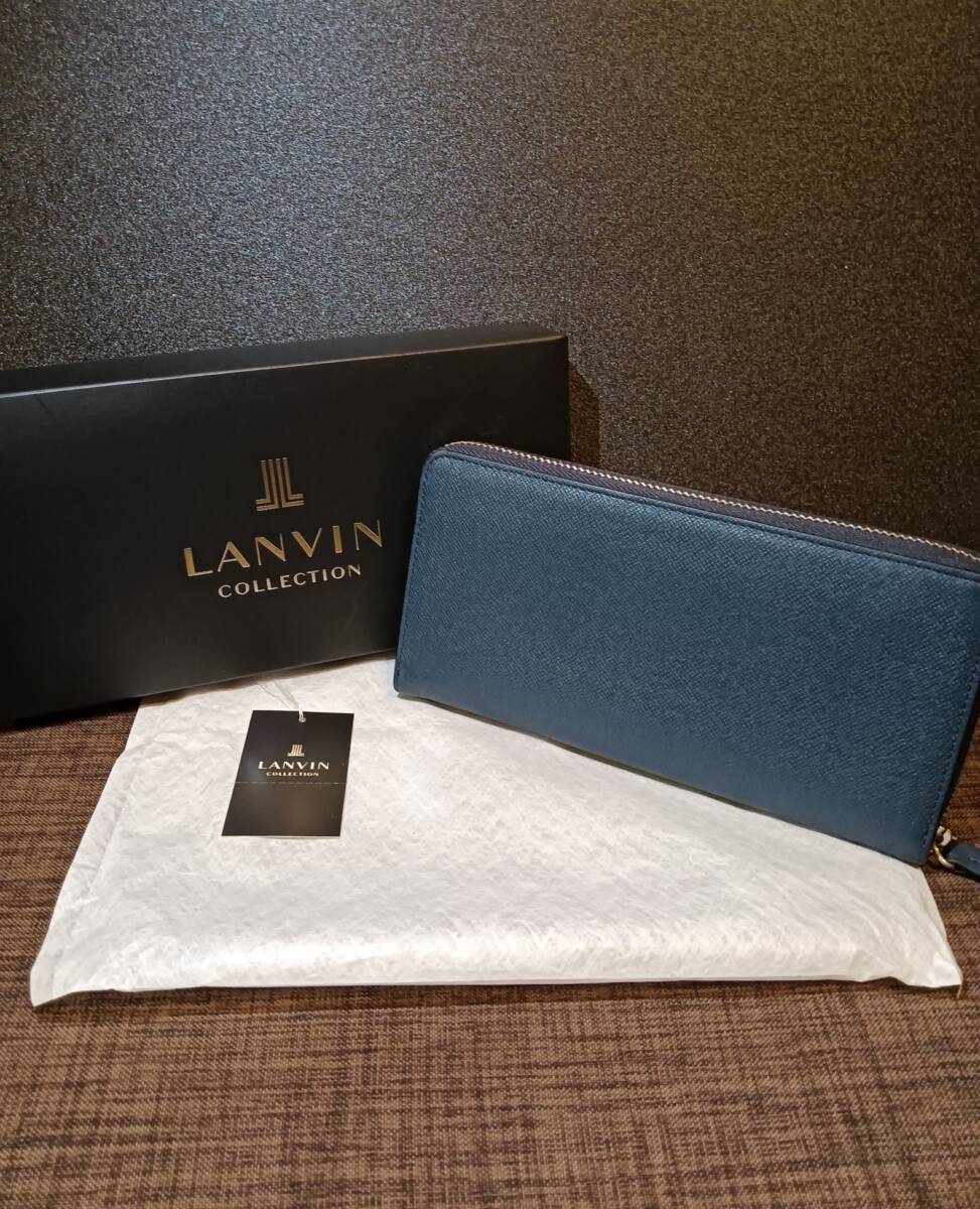 ◆ ほぼ未使用品 ランバン コレクション レザー 小銭入れ付き長財布 ラウンドファスナー 財布 箱付き ネイビー ターコイズブルー 收藏