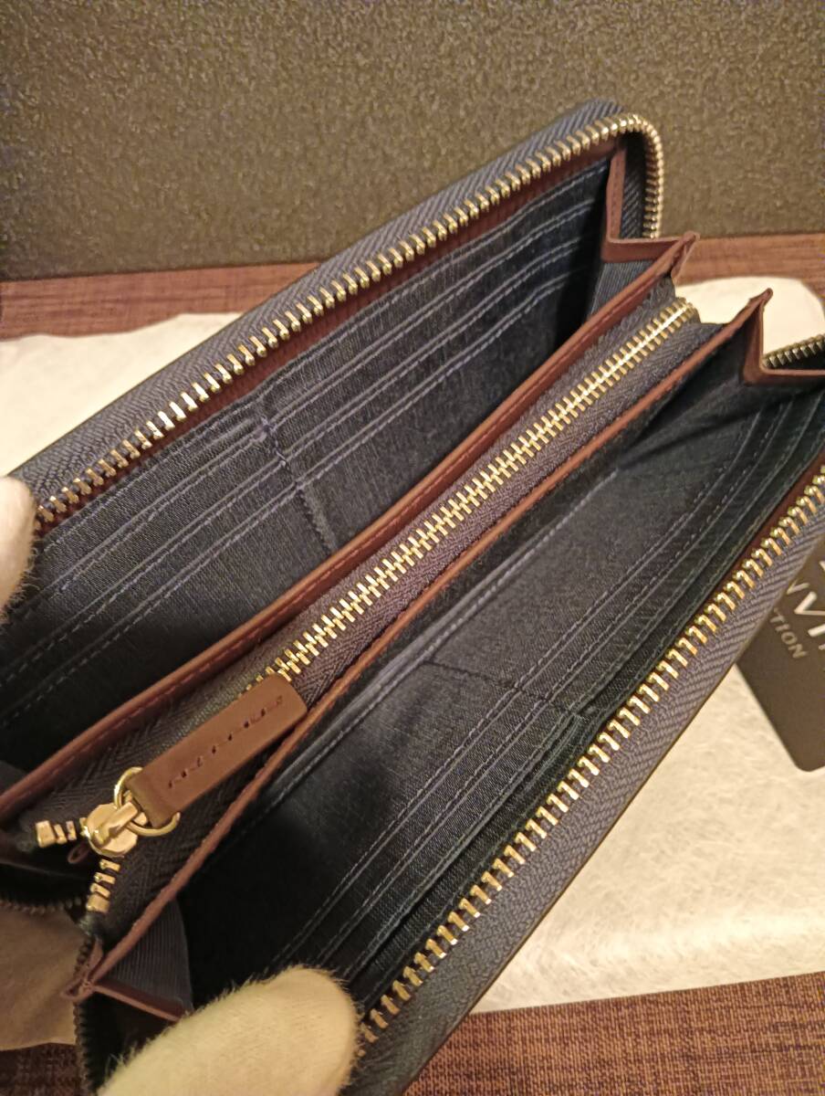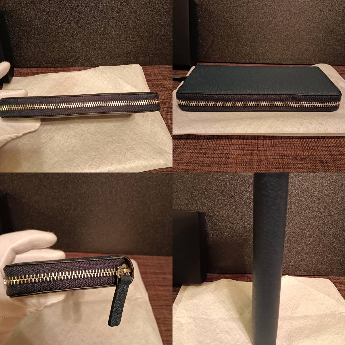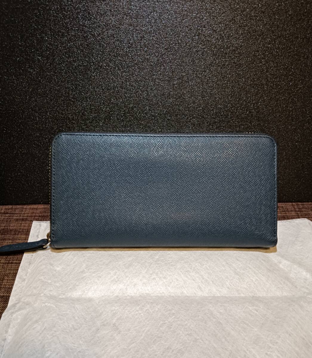 ◆ ほぼ未使用品 ランバン コレクション レザー 小銭入れ付き長財布 ラウンドファスナー 財布 箱付き ネイビー ターコイズブルー 收藏