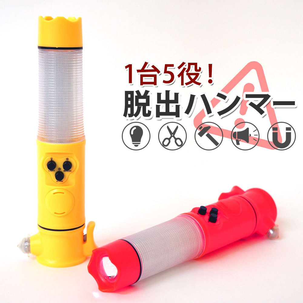 防災 車載用 1台5役 レスキュー ハンマー シートベルトカッター LED懐中電灯 非常灯 サイレン 緊急脱出用 イエロー XL912Y 收藏