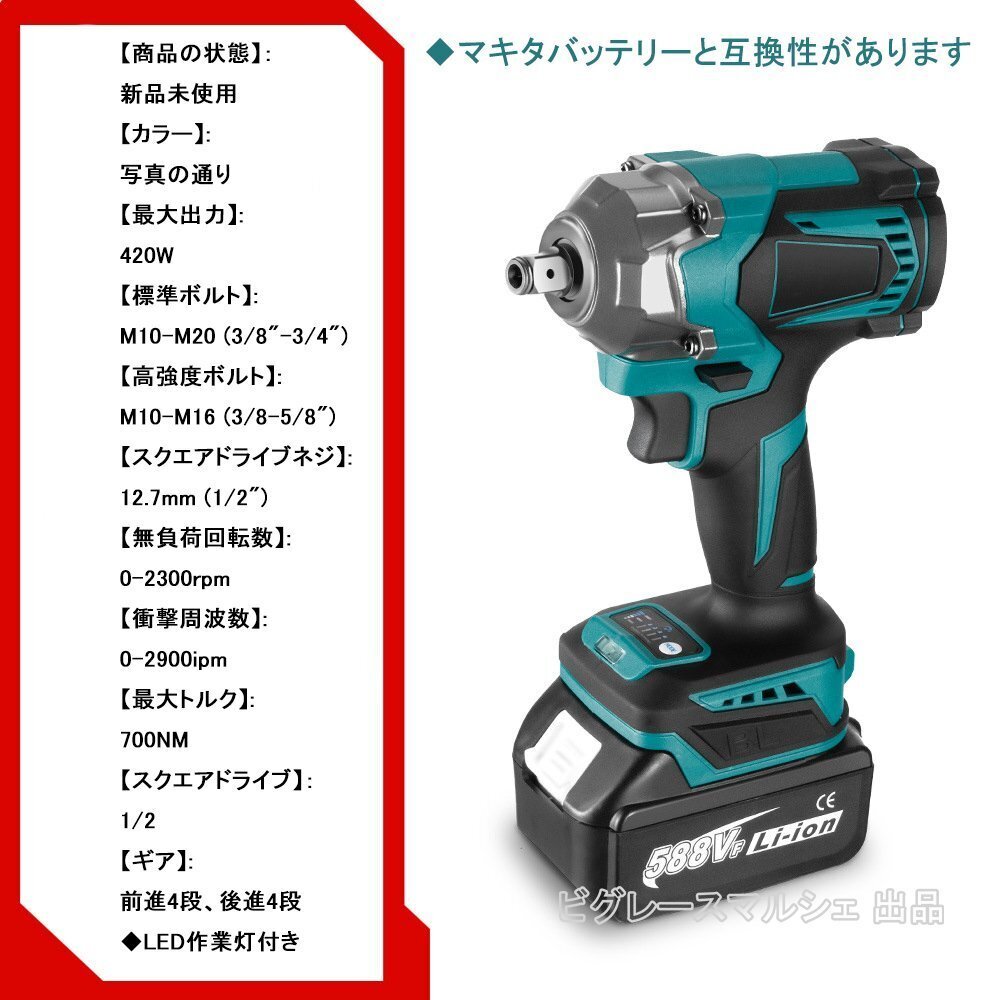 インパクトドライバー 電動 インパクトレンチ タイヤ交換 インパクト ドライバー 充電式インパクトレンチ 700N・m 12点セット 收藏