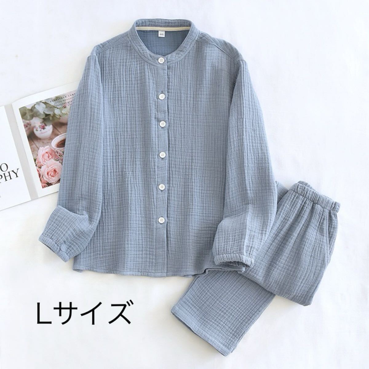 パジャマ レディース L綿100% 4重ガーゼ 秋冬快眠ルームウェア部屋着プレゼント開襟入所入院プレゼント厚めブルー柔らか通気 收藏