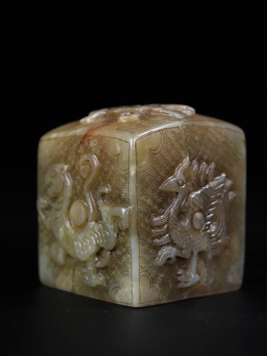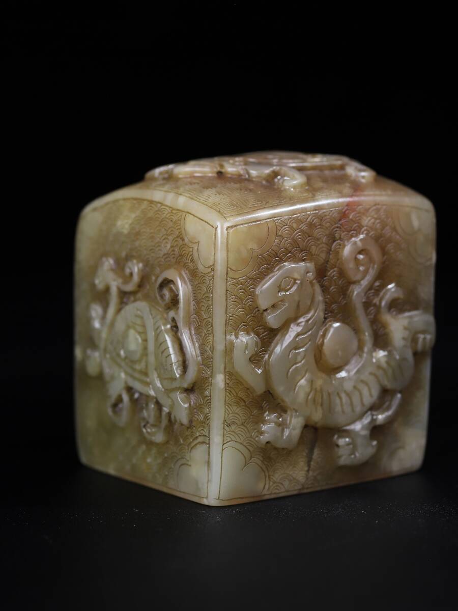 唐物 清時代 壽山石 『四大神獣』名人彫刻 田黄石彫 手彫り 共箱付き 印章 印鑑 印璽 極細工 置物擺件 古美術品 古董品 旧家蔵出 fx10.24 收藏