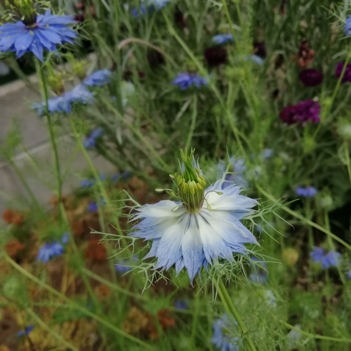 直まきができて育てやすく、自然風の花壇によく映える人気のニゲラ。花弁が厚く、切り花として花もち抜群。風変わりな花形がおもしろく、開花後に莢が大きく膨らみ、ドライフラワーにも人気!