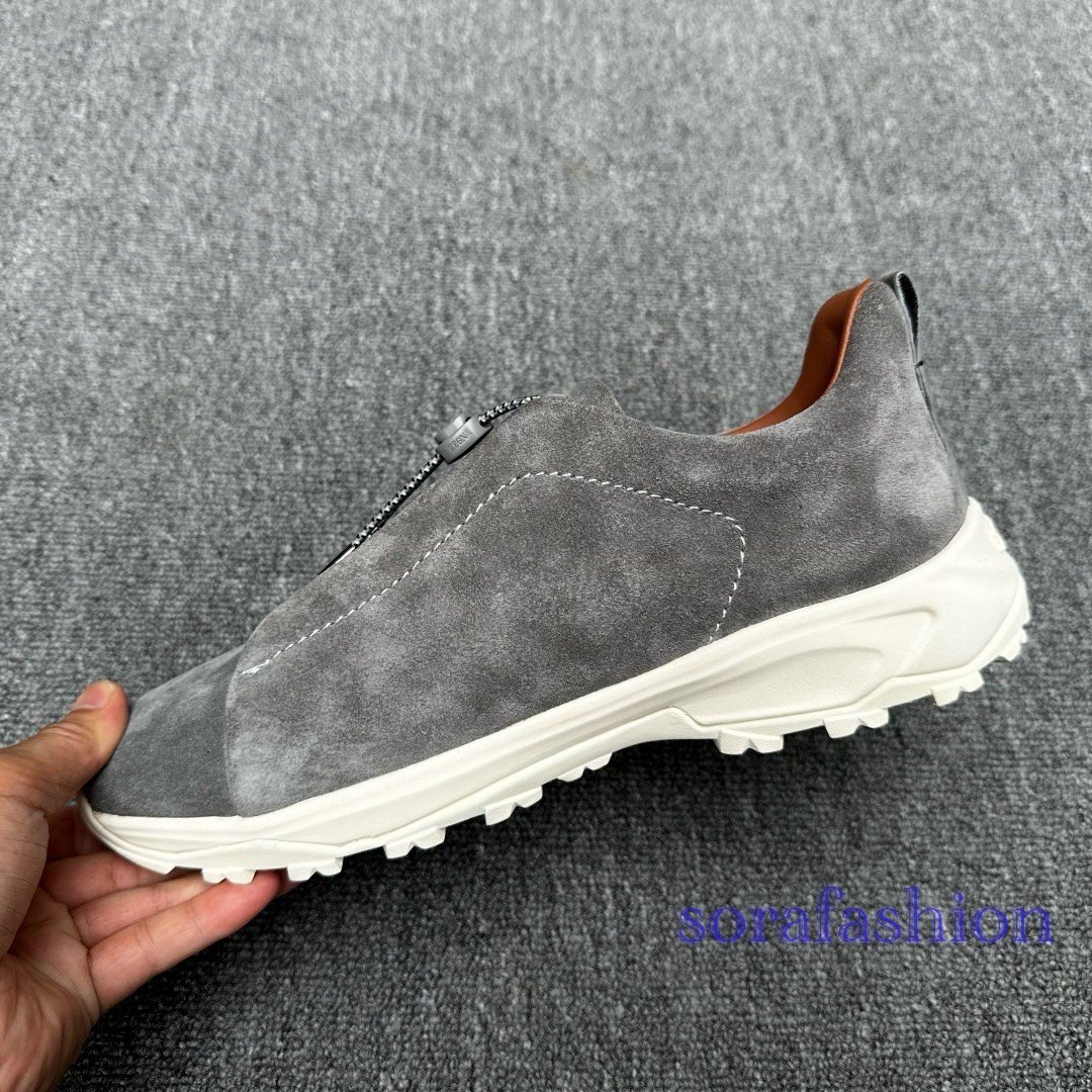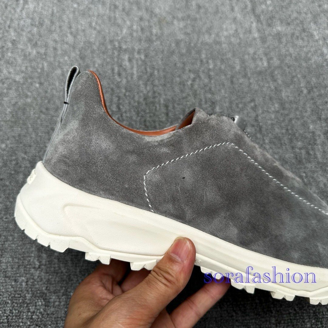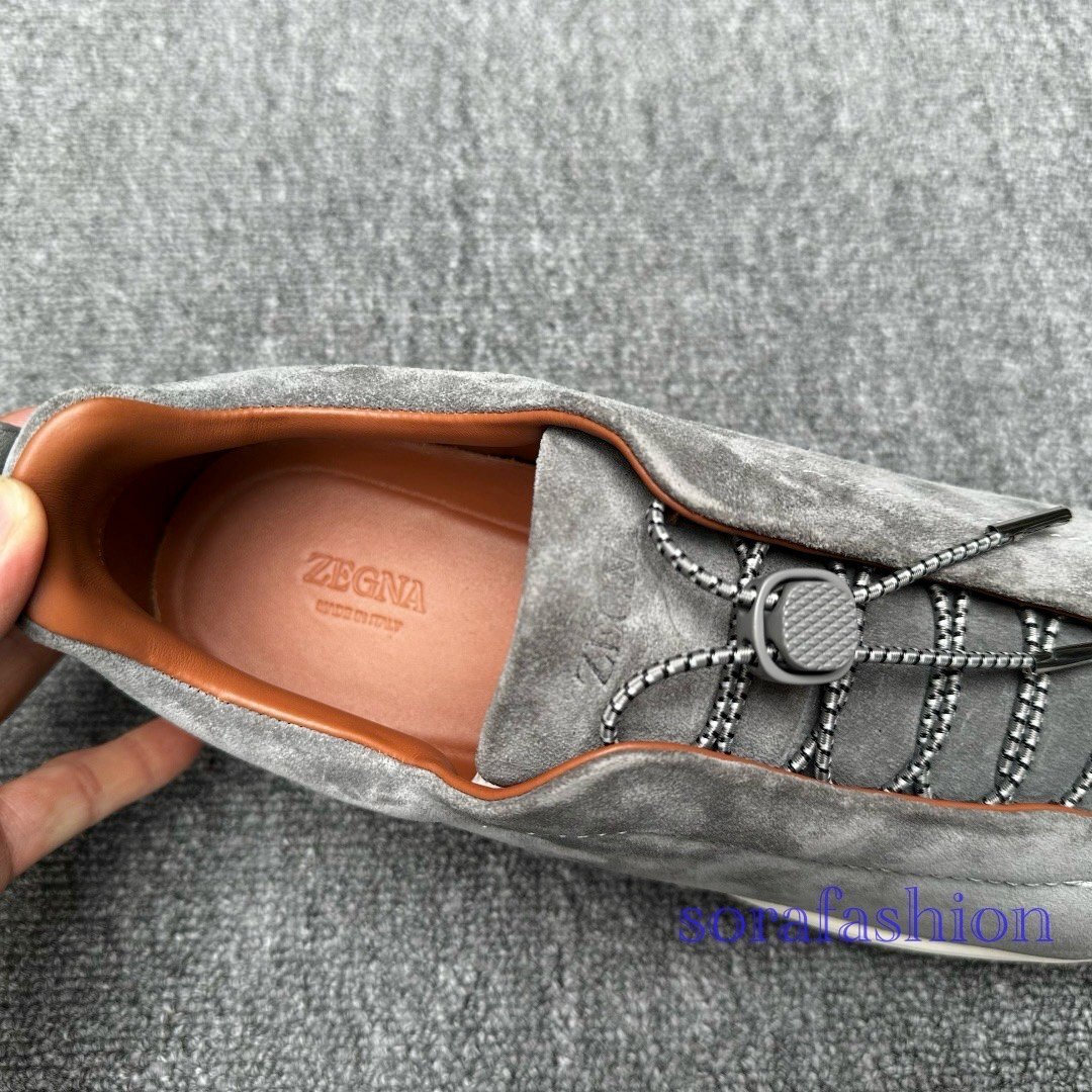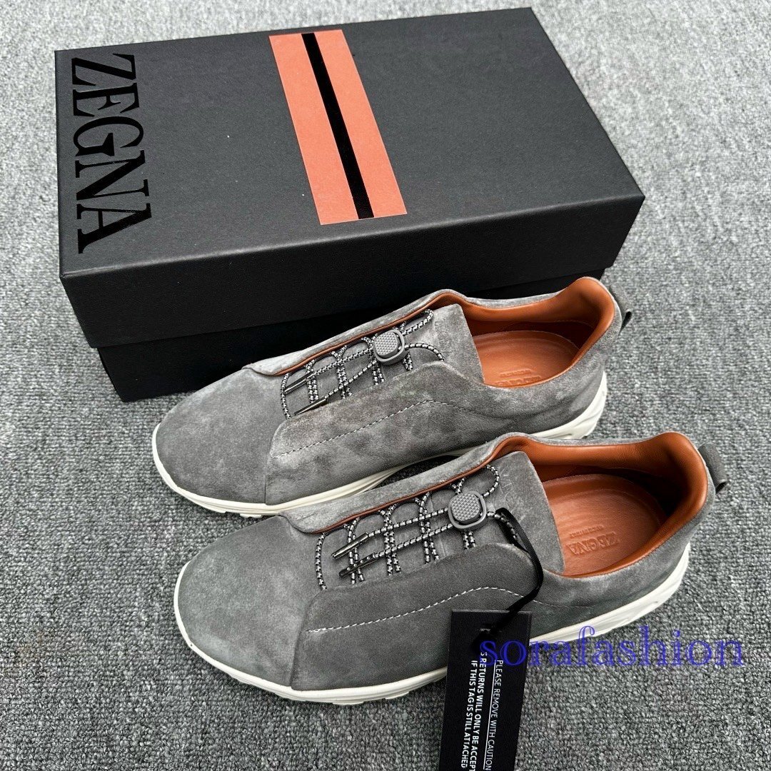 Ermenegildo Zegna エルメネジルド ゼニア メンズウォーキングシューズ スニーカー グレー EU39 スエード Triple Stitch ローカット 靴 收藏