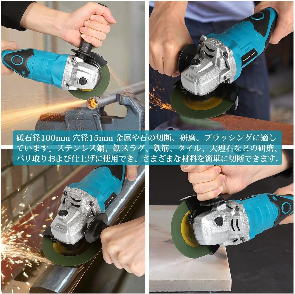 アルチザンツール 充電式グラインダー ATGR01B 研磨 塗装 仕上 バリ・錆び落とし サビ 研削 切断 φ100mm バッテリー1個+充電器 收藏
