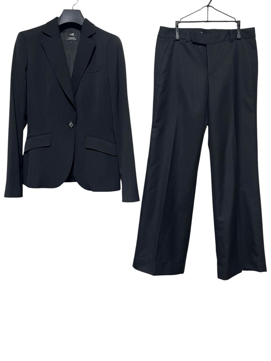 美品 23区 COLOMBO生地 ストライプパンツスーツセットアップ ブラック 收藏