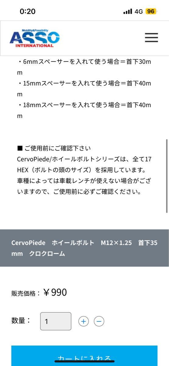 CervoPiede ホイールボルト M12×1.25 首下35mm クロクロームです。| 出价者 | 信用 | 价格 | 时间 |