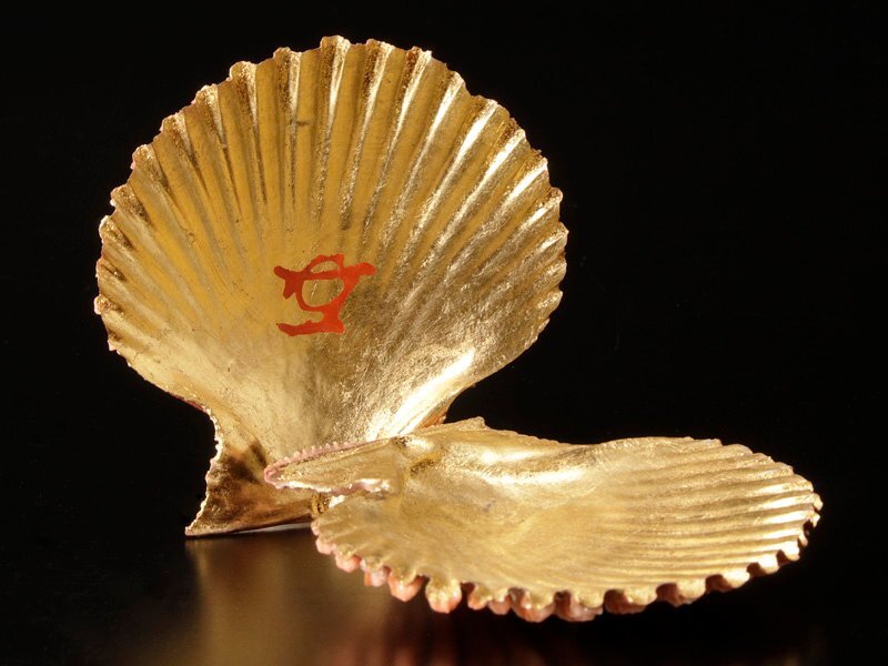 | 【古美味】官休庵(有隣斎)書付 南紀産 桧扇貝 香合 銘:守 茶道具 保証品 |
