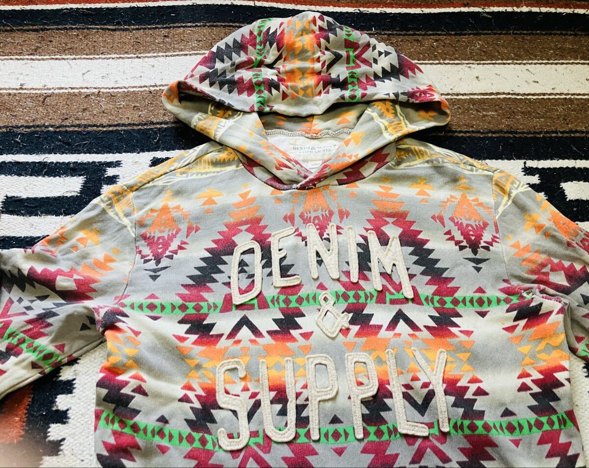 ラルフローレン/デニム&サプライ ネイティブ柄コットンパーカー/フーディー USサイズのレディースM=メンズのL ロゴワッペン付 USED 收藏