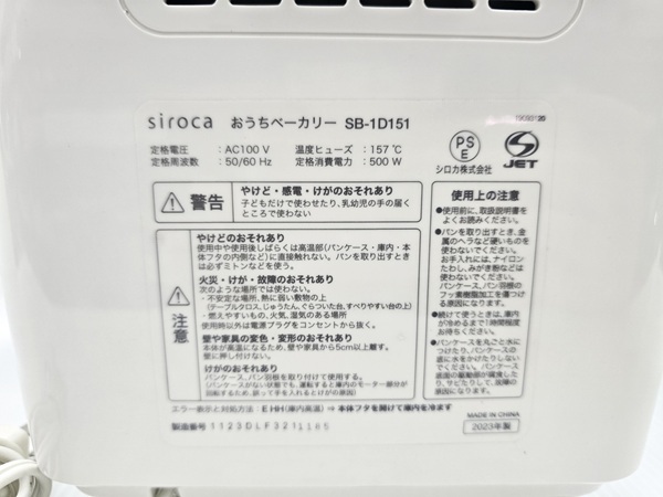 【中古品】 シロカ siroca おうちベーカリー SB-1D151 2023年製 ホワイト ○YR-19466○ 收藏