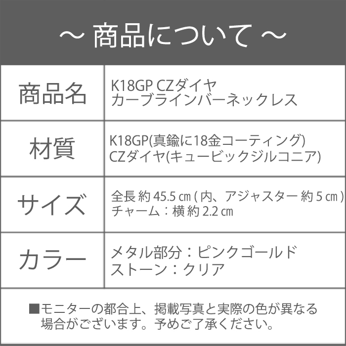 770円スタート/新品/ネックレス/K18GP/ライン/バー/18金/ピンクゴールド/レディース/シンプル/カーブライン/上品/CZ/ジルコニア 收藏