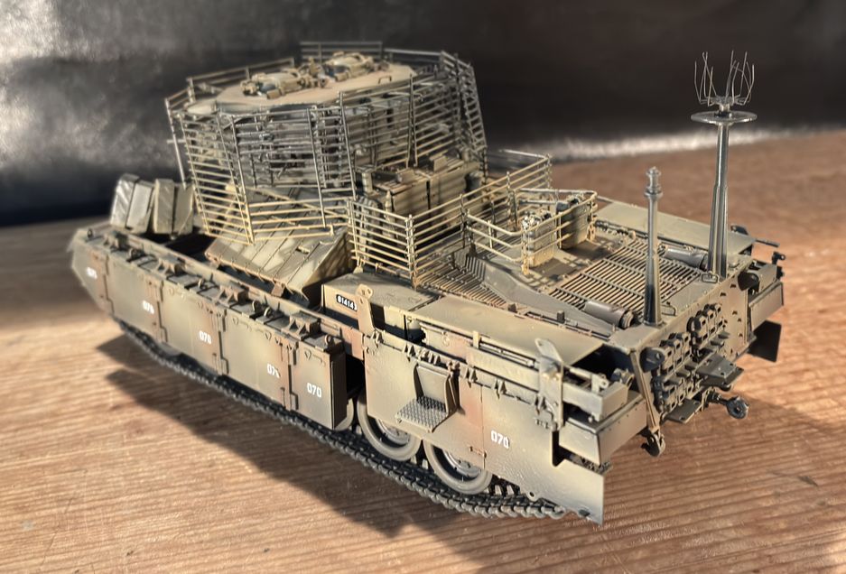 センチュリオンの改造装甲車に見えますが、前線指揮のほか、ミサイルポットに近接重機銃を持った戦車よりも凶悪な装備をもった車両です。