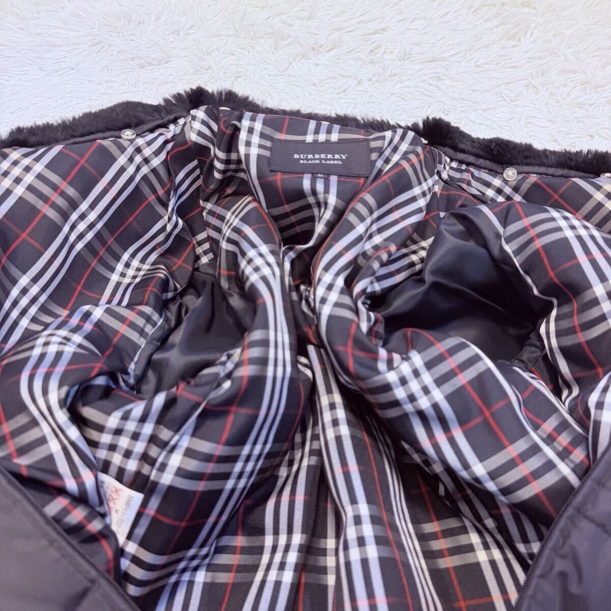 【美品】BURBERRY BLACK LABEL バーバリーブラックレーベル ダウンジャケット キルティングジャケット ノバチェック ラビットファー M 收藏