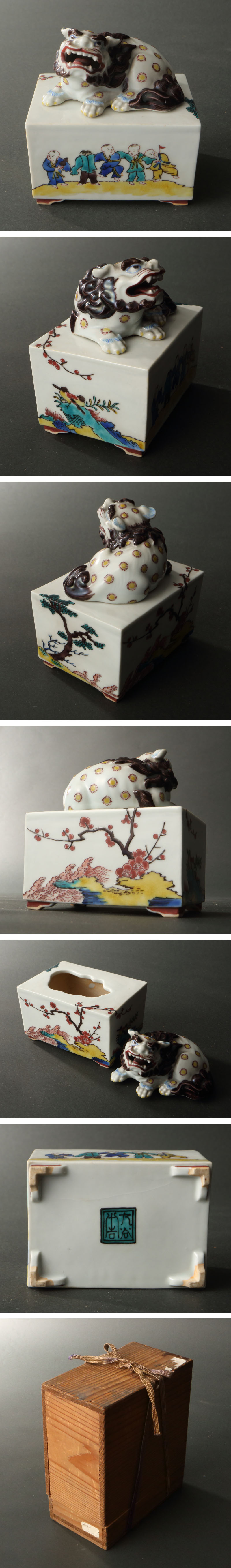 委託HK◇時代 九谷焼色絵獅子香炉(茶道具 陶磁器 陶芸 九谷焼 古九谷 色絵 唐子 梅 松 花鳥 お香 聞香 空薫 香道具 飾り 古物 時代物) 收藏