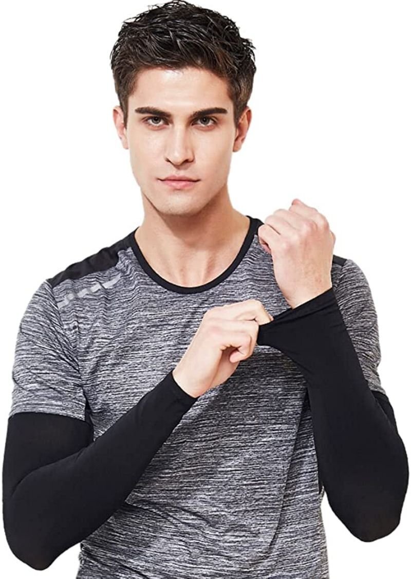 アームカバー UVカット 大きいサイズ 接触冷感 メンズ ロング スポーツ 日焼け対策 アウトドア 涼しい 運転 クール【指穴ありホワイト】 收藏