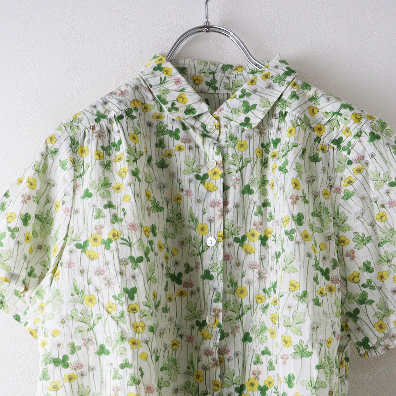 美品 パークス Parkes リバティプリント「ジョセフィンズ ガーデン」半袖シャツ グリーン M┃花柄 白詰草 クローバー【2400014669565】 收藏