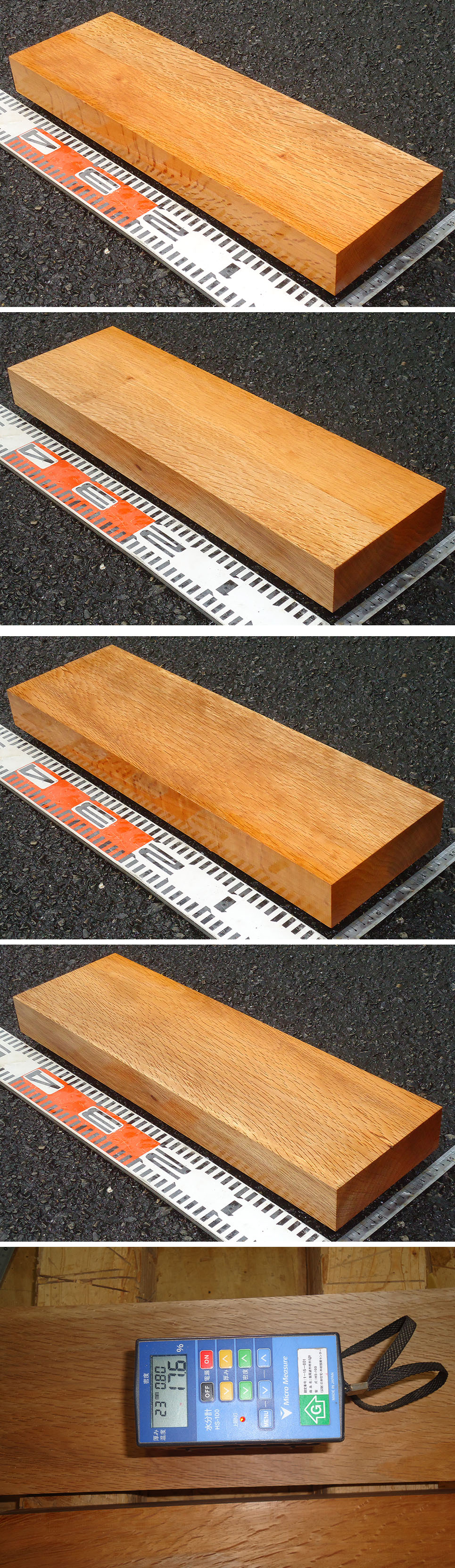 ・乾燥状態は良好で、 優しい色合い、樫杢で美しい素材、片木口に小さな傷(変色)がありますが乾燥状態は良好です。