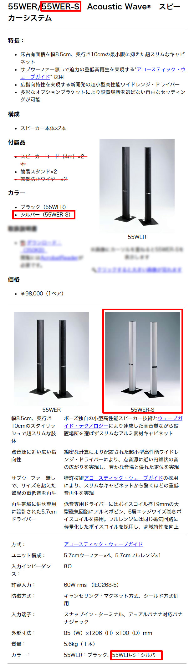 | メーカー・型式 | BOSE / Acoustic Wave 55WER-S | |