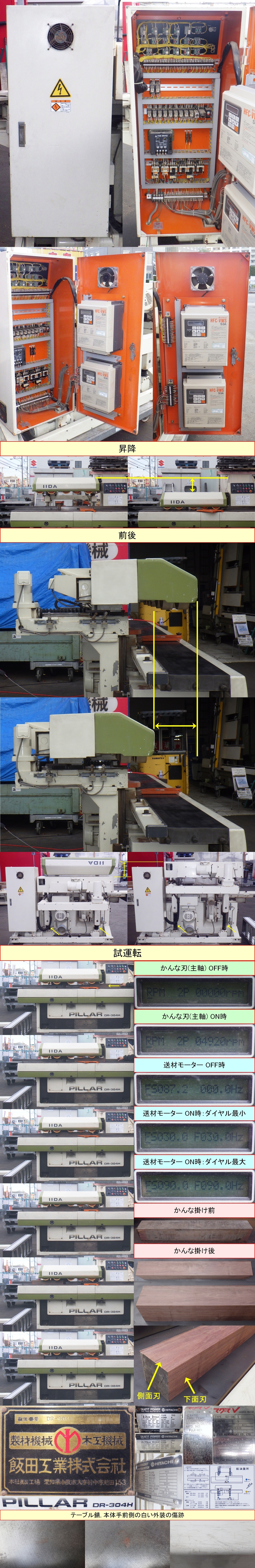 [希少] 飯田工業 自動直角二面かんな盤/ピラー DR-304H 定盤,側面共に3枚刃 動作良好 定盤(テーブル)長さ3645×加工幅300mm×加工厚さ180mm 收藏