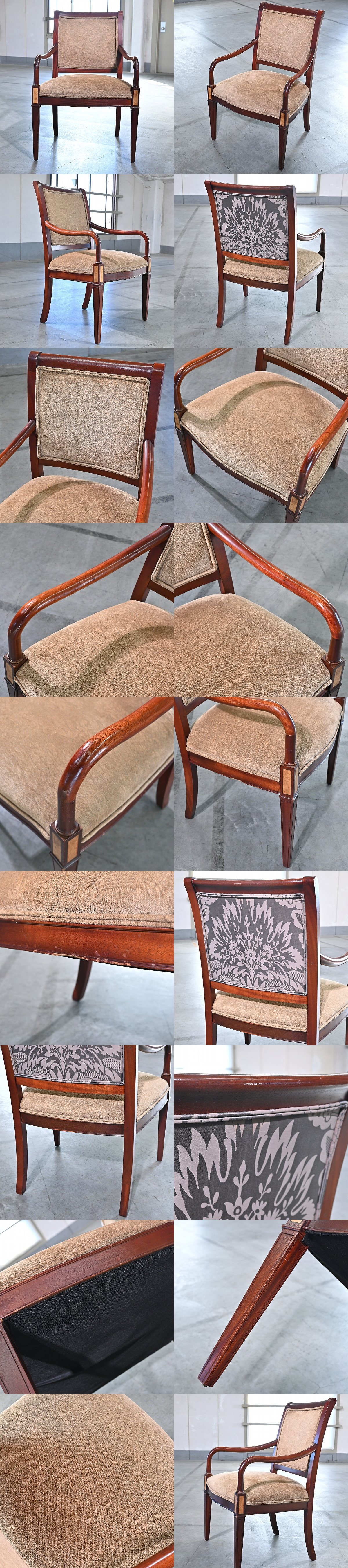 アンティーク調 ダイニングチェア B マホガニー無垢材 アーム 象嵌 リビング ラウンジ ハイバック シングルソファ クラシカル ビンテージ風 收藏