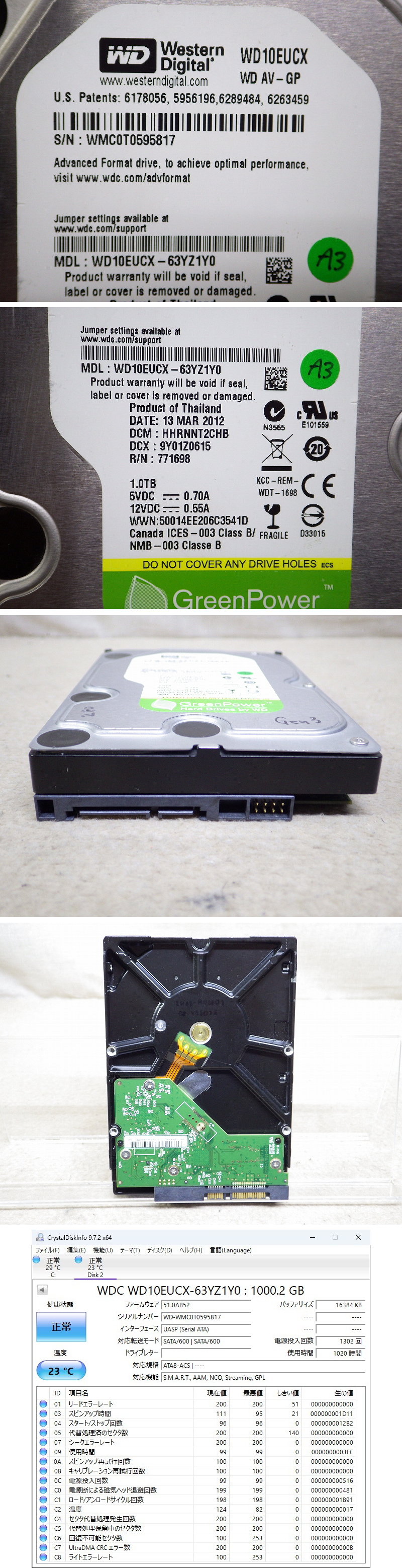 Kネま2326 WD 3.5インチ SATA 内蔵HDD 1TB WD10EUCX-63YZ1Y0 パソコン周辺機器 PCパーツ ハードディスク 收藏