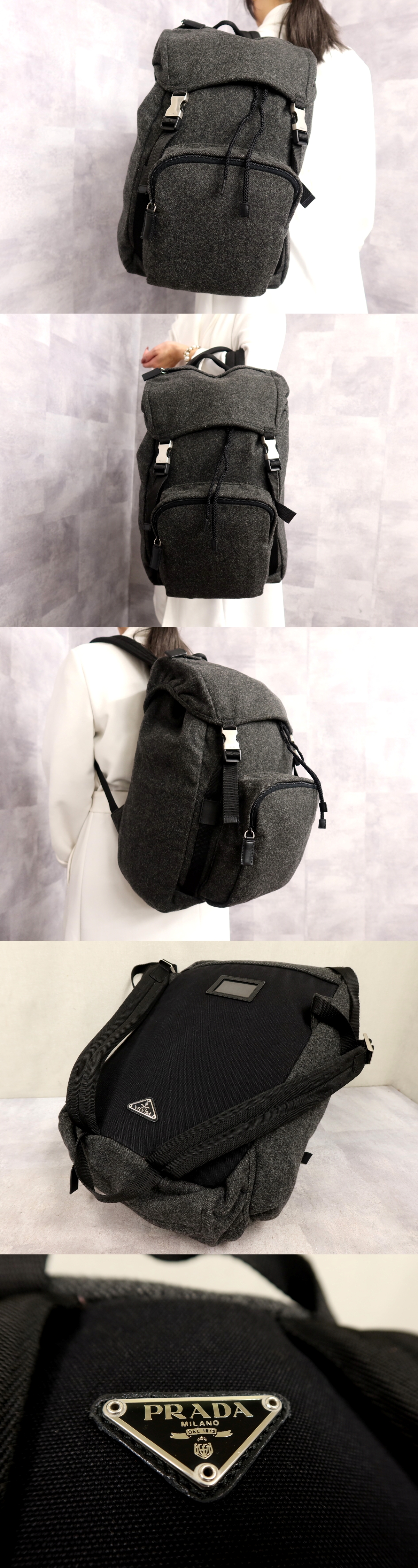 ●超美品●PRADA プラダ●V135●三角ロゴプレート●ウール カーフ レザー 本革●リュックサック●黒系●シルバー金具●A4 かばん●Js63165 收藏