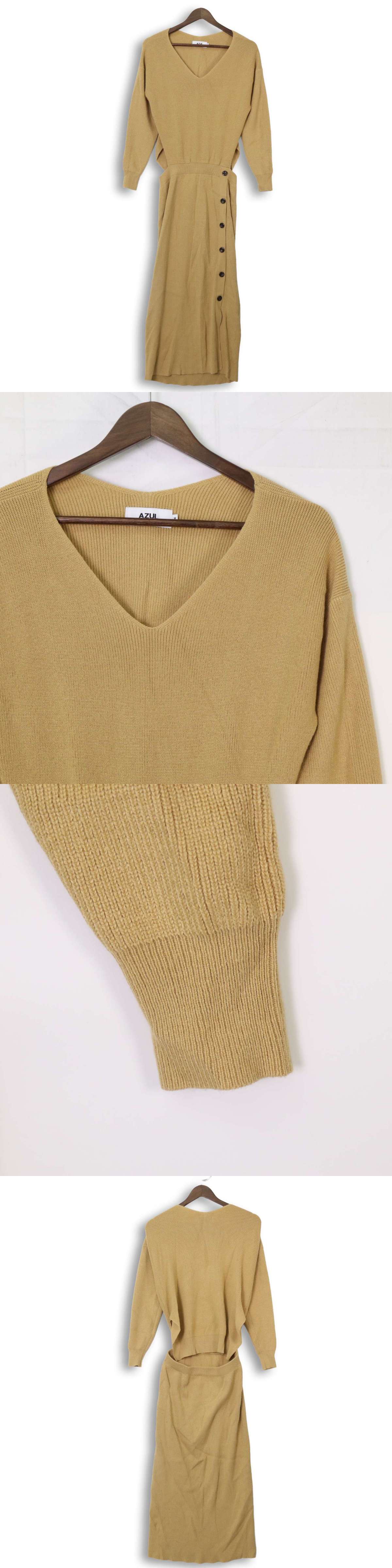 AZUL by moussy アズール マウジー 秋冬 サイドボタン★ Vネック ニット ワンピース Sz.M レディース 收藏