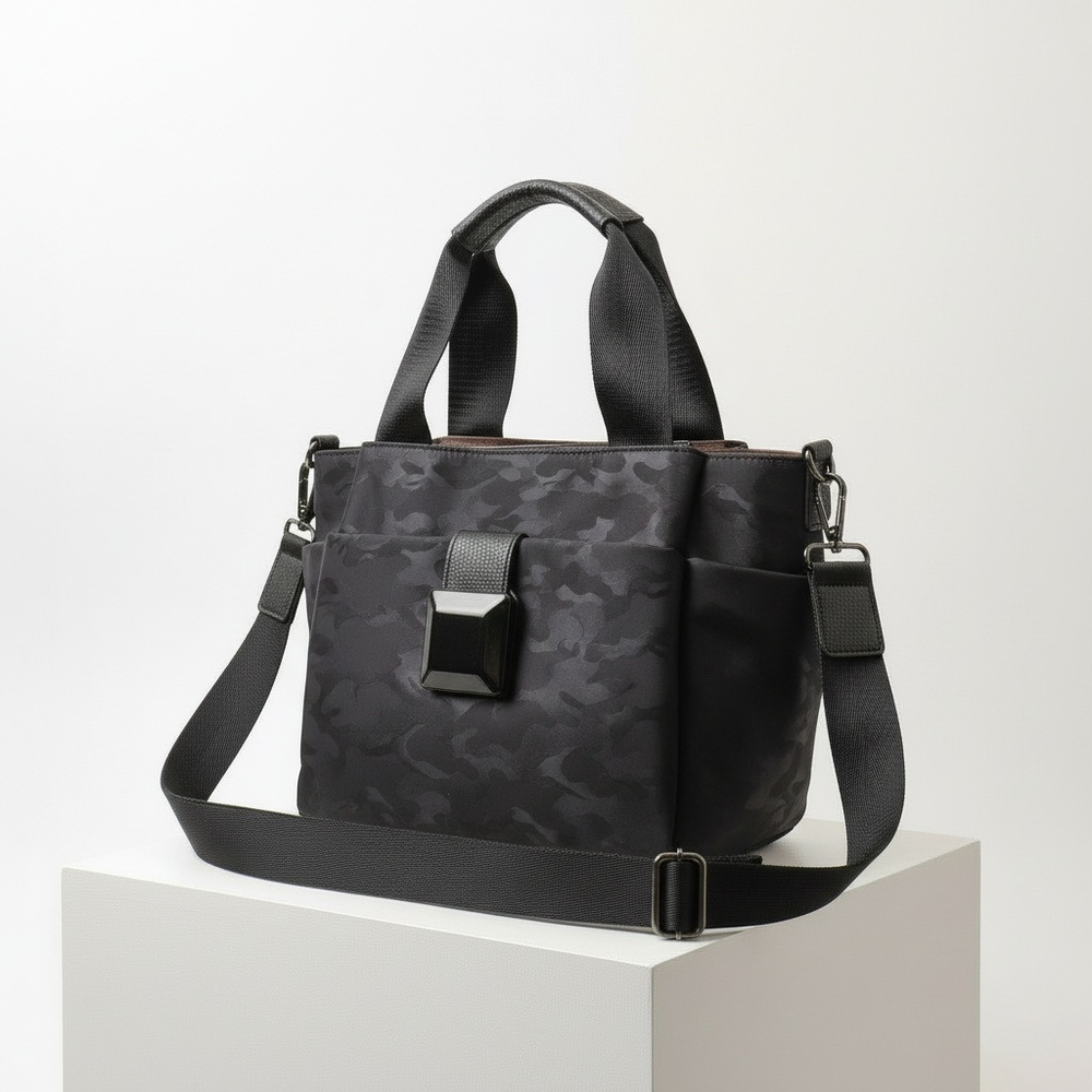 ☆ ブラックカモ ☆ ブラックスクエアナイロン 2Wayトート ラムモード トートバッグ 2Way ナイロンバッグ トートバック トート 手提げ 收藏